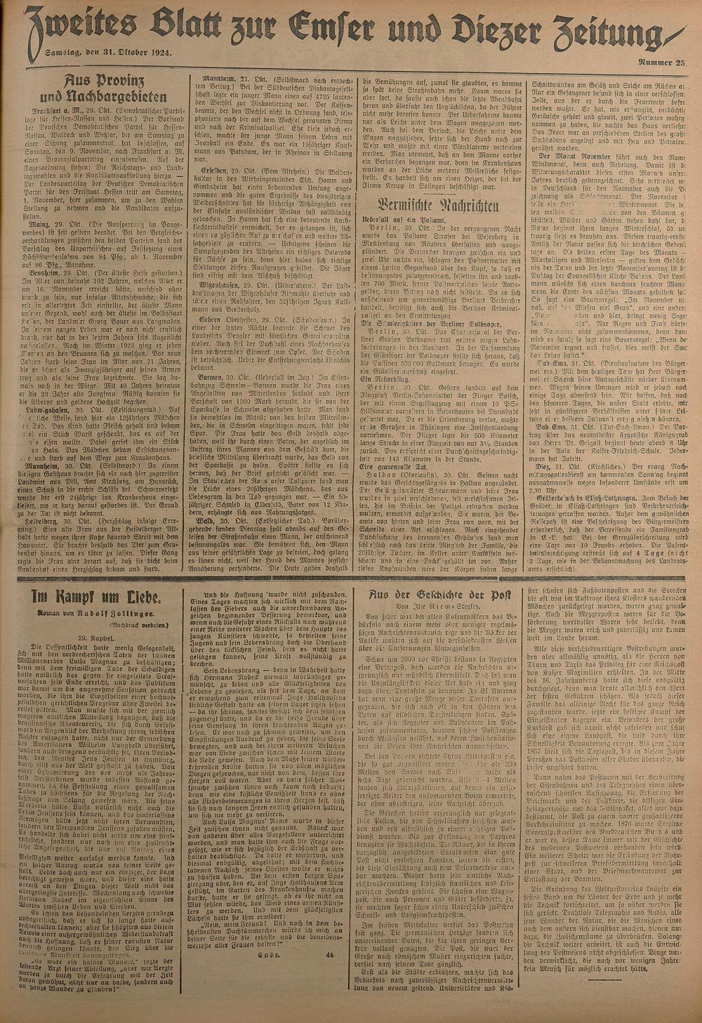 1924: Lahnbote bis 4. Apr. 1924/Emser Zeitung ab 5. Apr. 1924 - Nr. 10, 37 und 71...