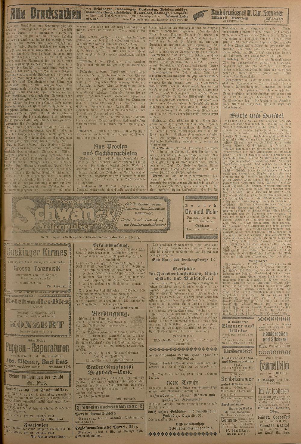 1924: Lahnbote bis 4. Apr. 1924/Emser Zeitung ab 5. Apr. 1924 - Nr. 10, 37 und 71...