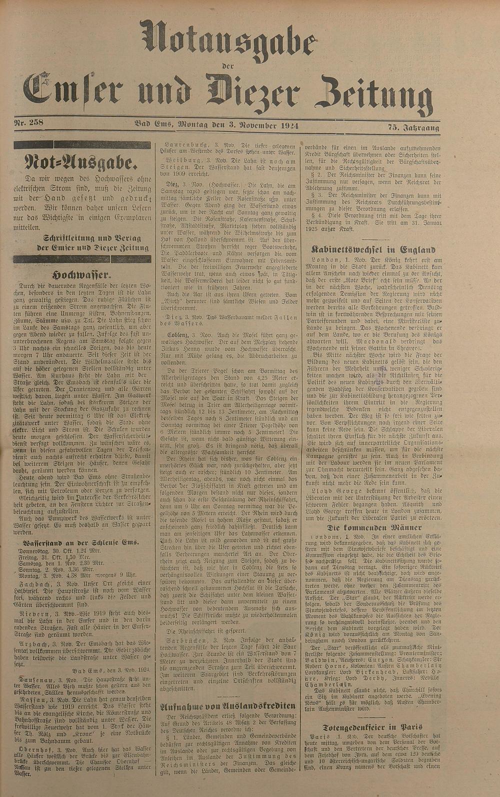1924: Lahnbote bis 4. Apr. 1924/Emser Zeitung ab 5. Apr. 1924 - Nr. 10, 37 und 71...
