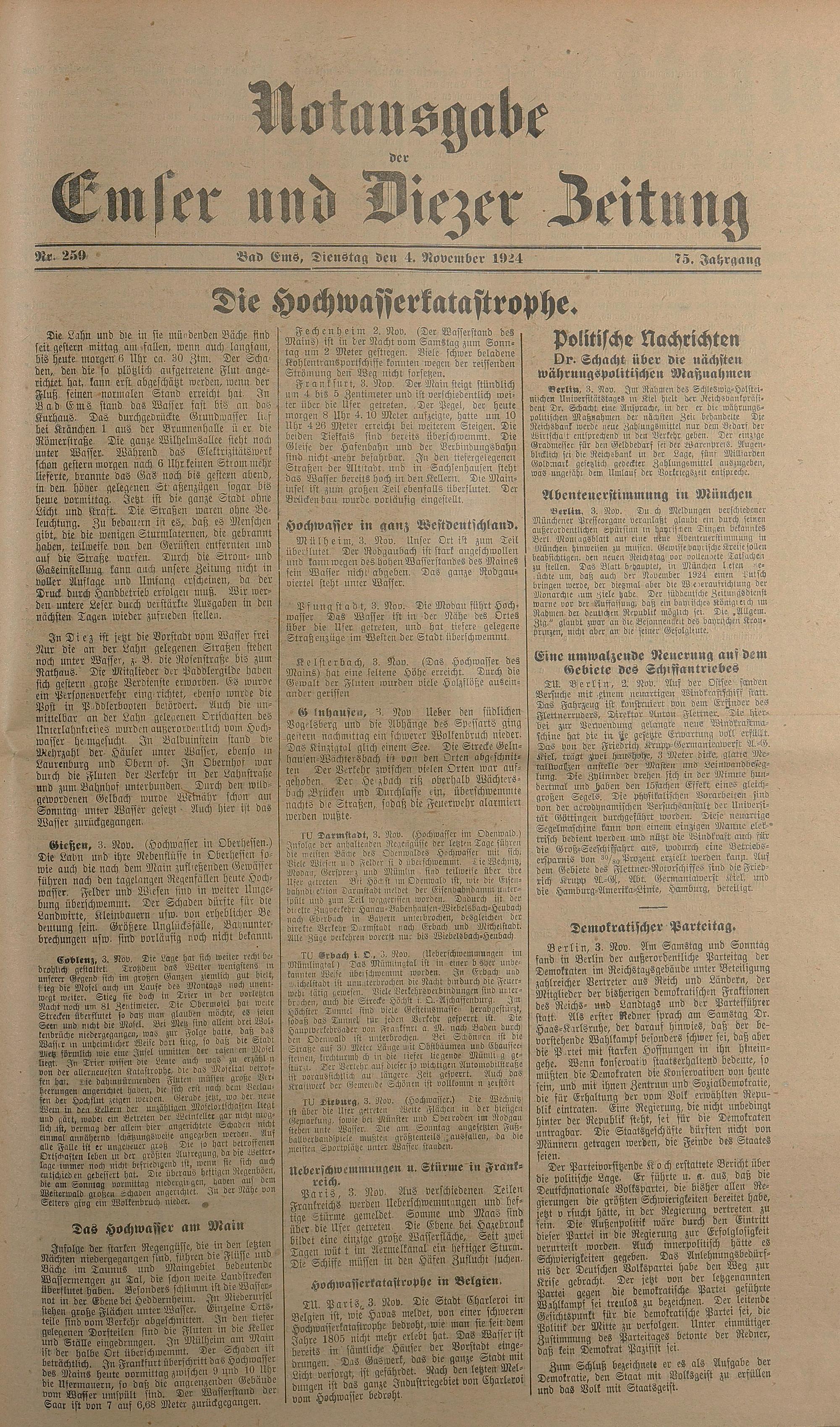 1924: Lahnbote bis 4. Apr. 1924/Emser Zeitung ab 5. Apr. 1924 - Nr. 10, 37 und 71...