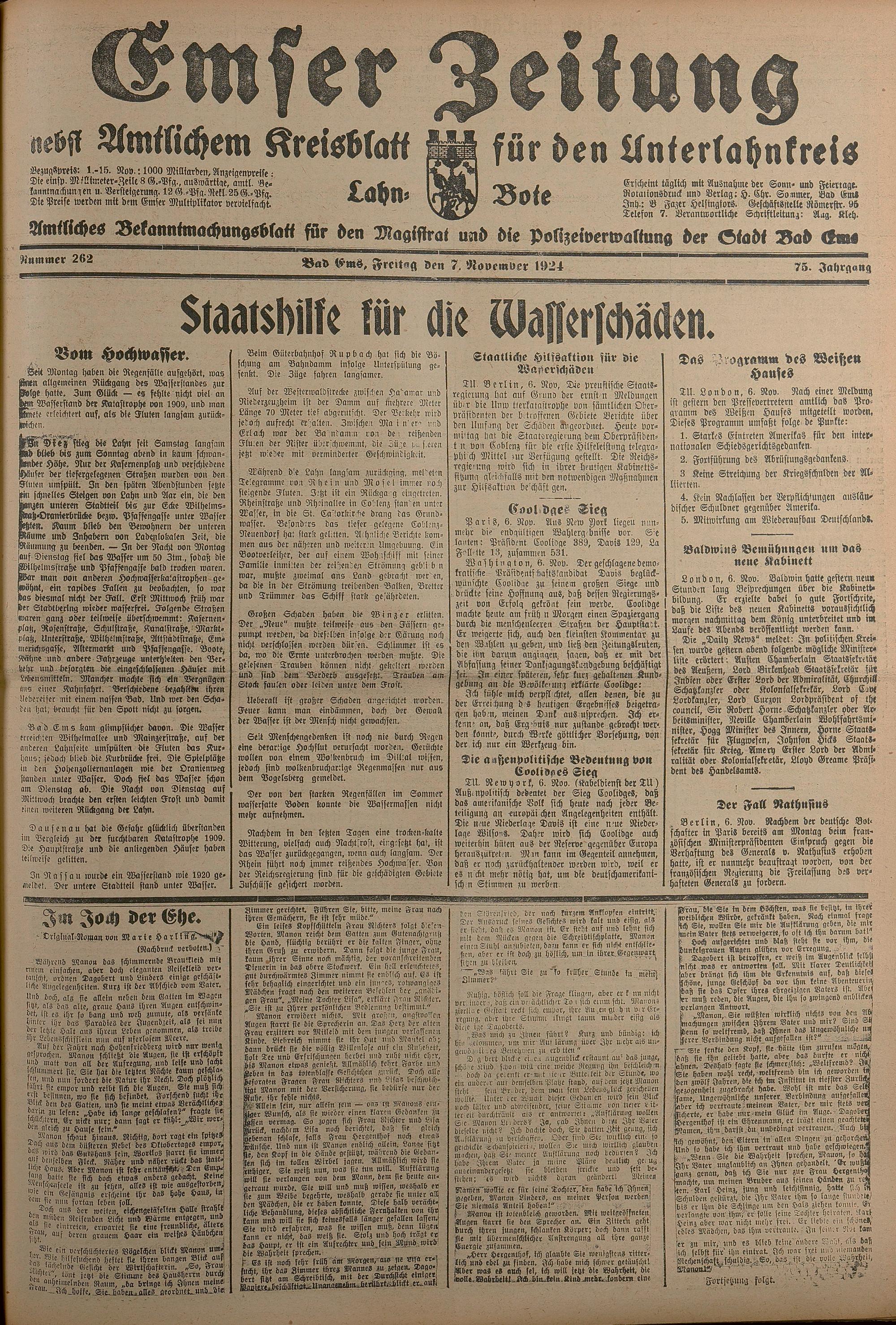1924: Lahnbote bis 4. Apr. 1924/Emser Zeitung ab 5. Apr. 1924 - Nr. 10, 37 und 71...