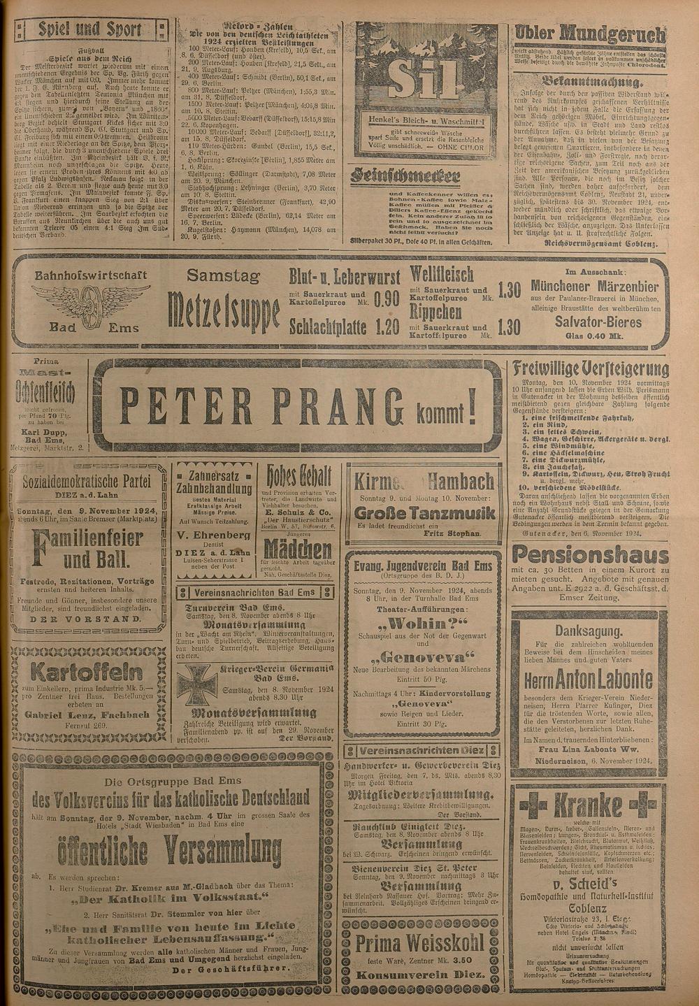 1924: Lahnbote bis 4. Apr. 1924/Emser Zeitung ab 5. Apr. 1924 - Nr. 10, 37 und 71...