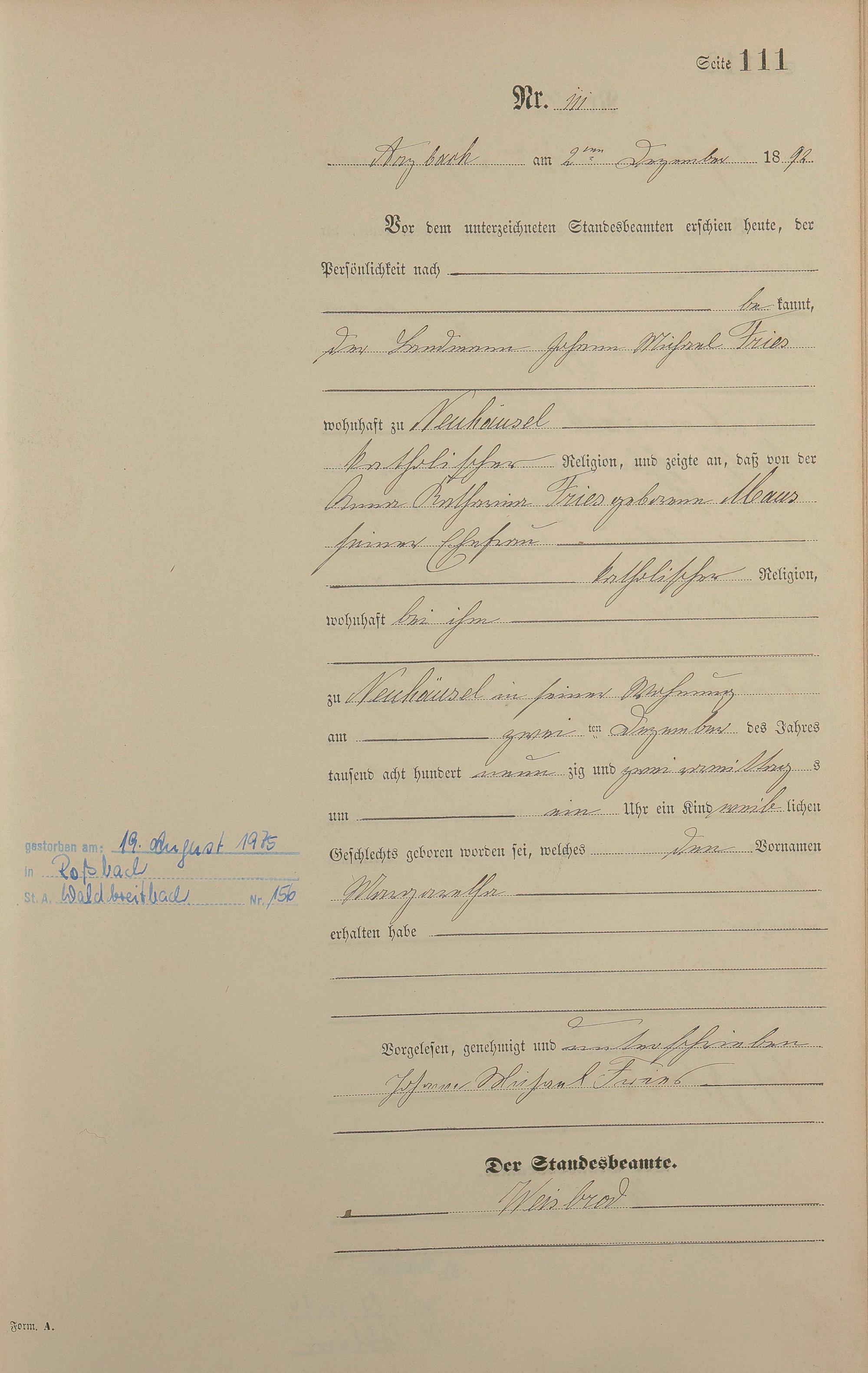 Geburtsregister 1892