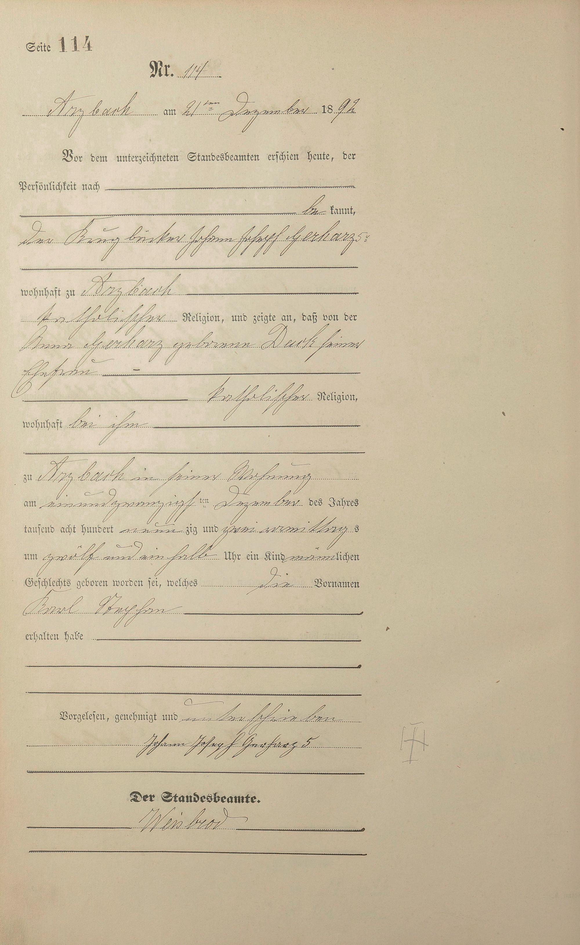 Geburtsregister 1892