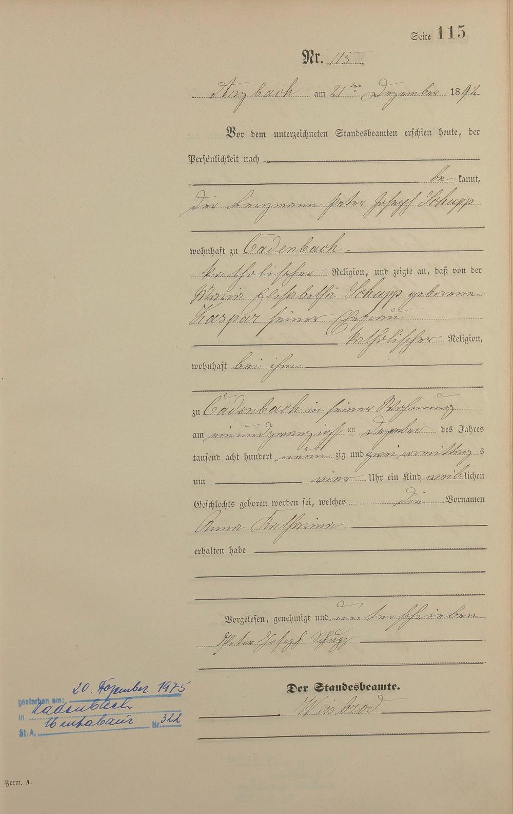 Geburtsregister 1892