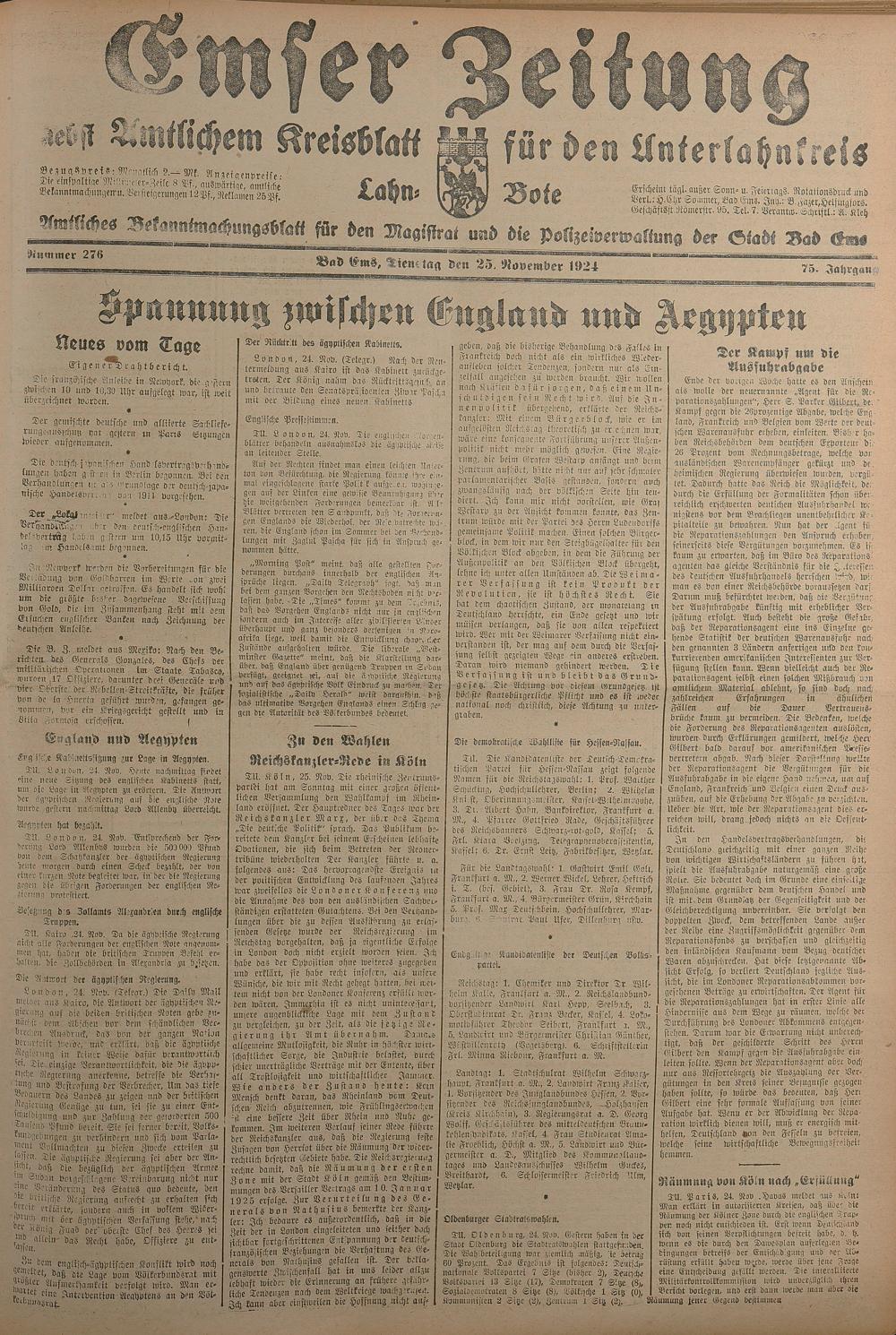 1924: Lahnbote bis 4. Apr. 1924/Emser Zeitung ab 5. Apr. 1924 - Nr. 10, 37 und 71...