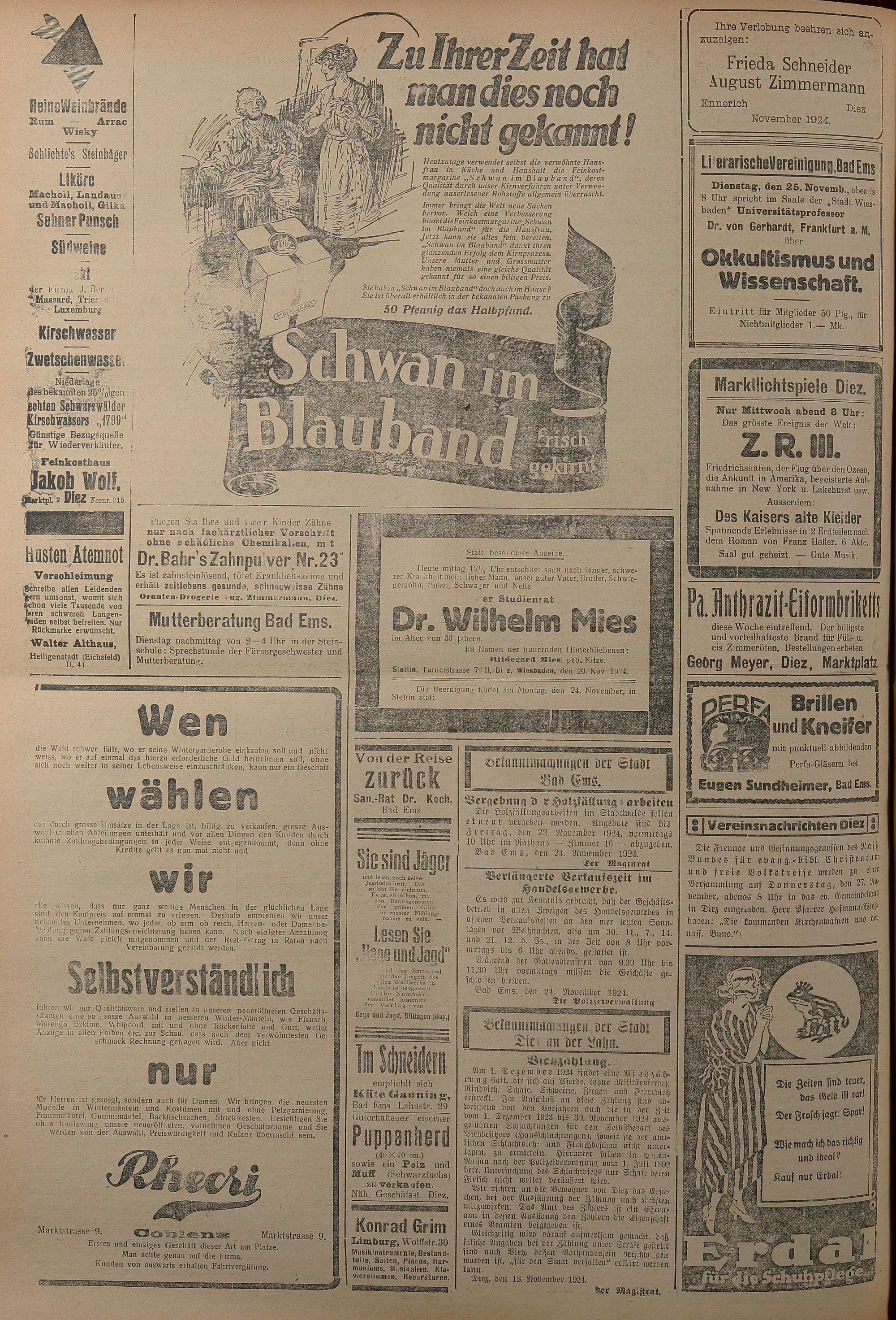 1924: Lahnbote bis 4. Apr. 1924/Emser Zeitung ab 5. Apr. 1924 - Nr. 10, 37 und 71...