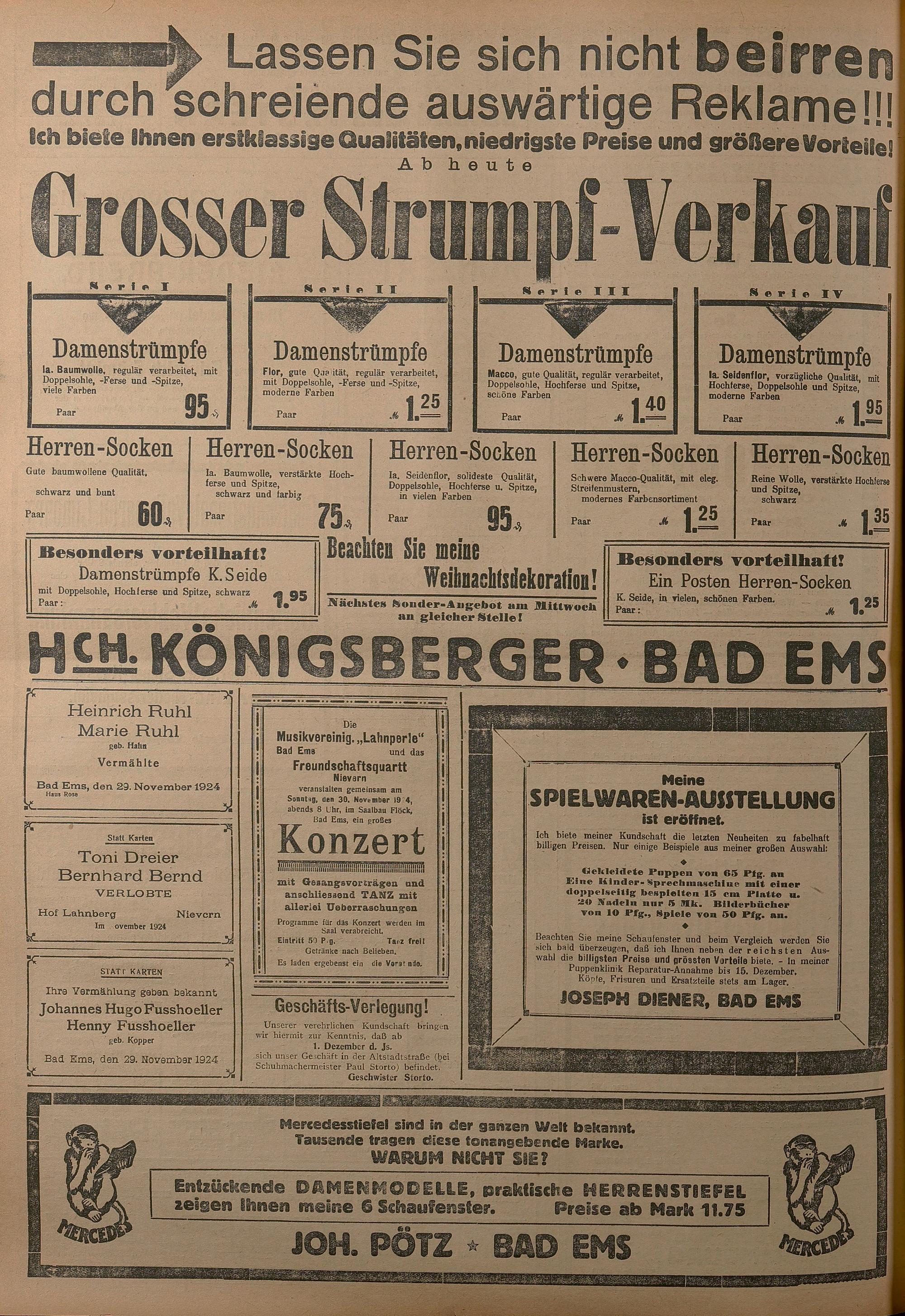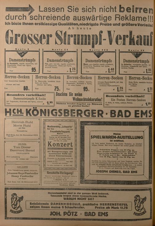 1924: Lahnbote bis 4. Apr. 1924/Emser Zeitung ab 5. Apr. 1924 - Nr. 10, 37 und 71...