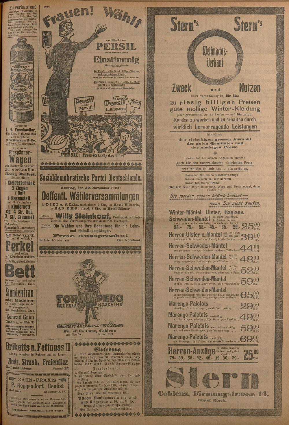 1924: Lahnbote bis 4. Apr. 1924/Emser Zeitung ab 5. Apr. 1924 - Nr. 10, 37 und 71...