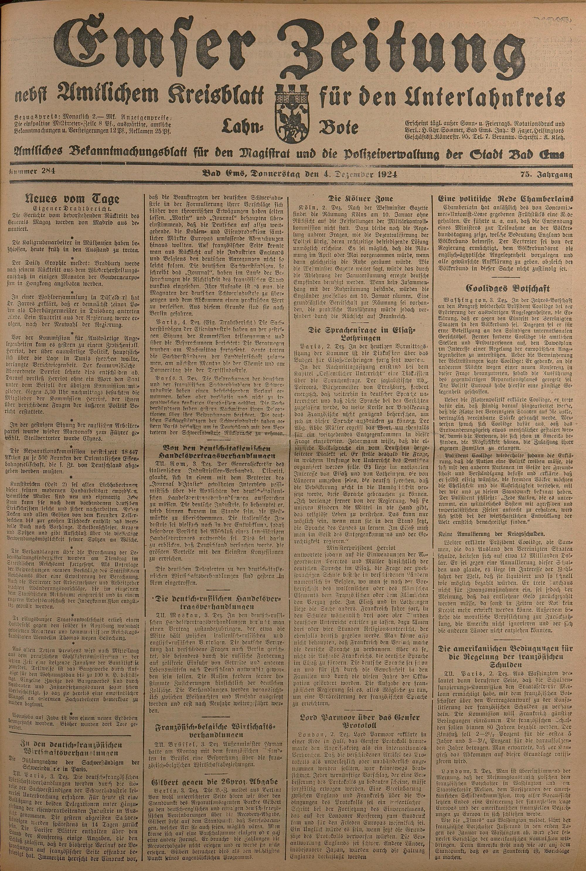 1924: Lahnbote bis 4. Apr. 1924/Emser Zeitung ab 5. Apr. 1924 - Nr. 10, 37 und 71...
