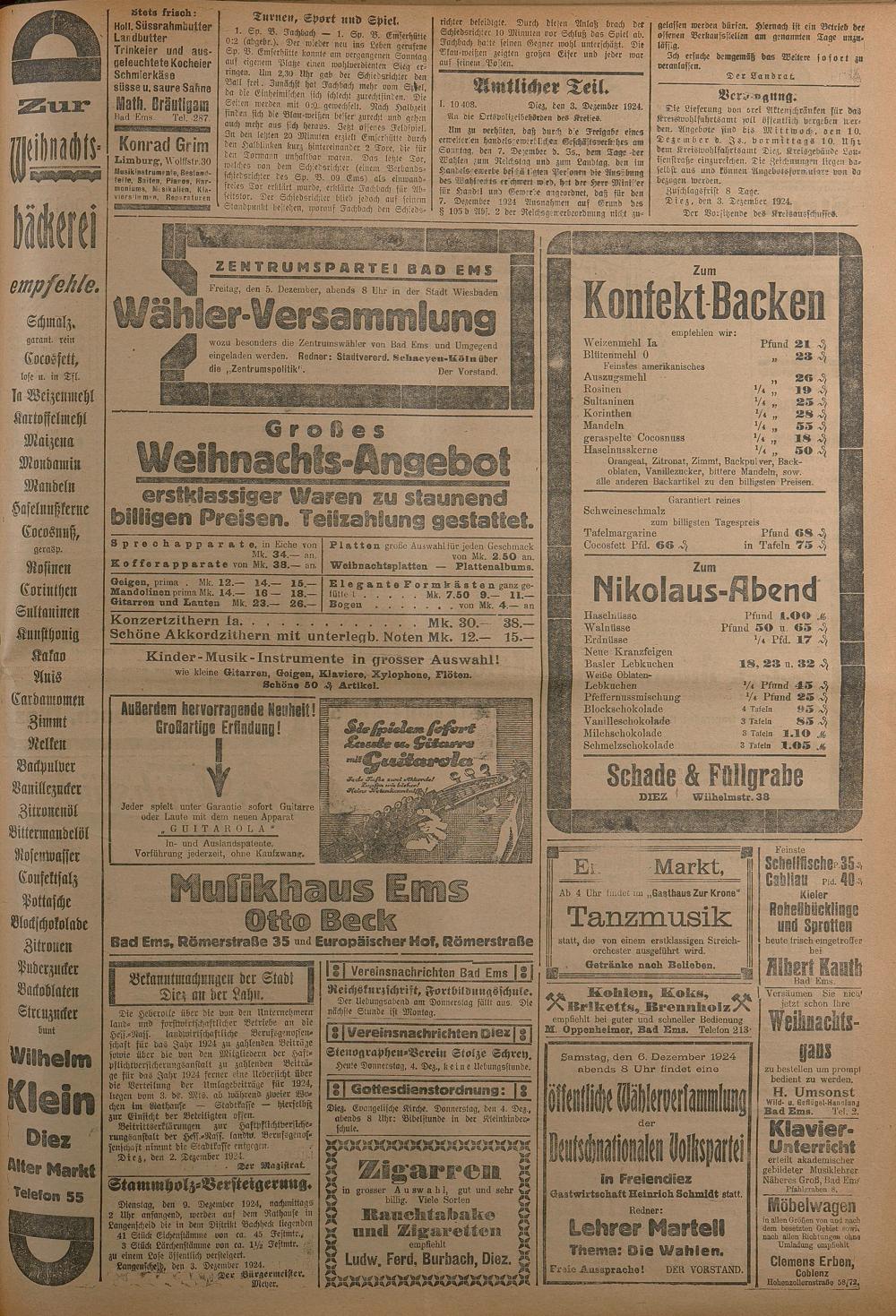 1924: Lahnbote bis 4. Apr. 1924/Emser Zeitung ab 5. Apr. 1924 - Nr. 10, 37 und 71...
