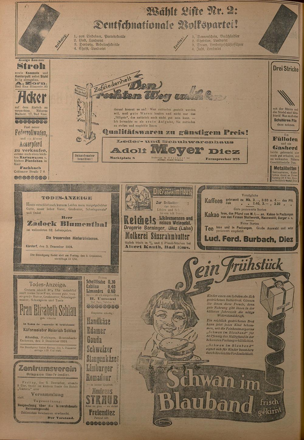 1924: Lahnbote bis 4. Apr. 1924/Emser Zeitung ab 5. Apr. 1924 - Nr. 10, 37 und 71...