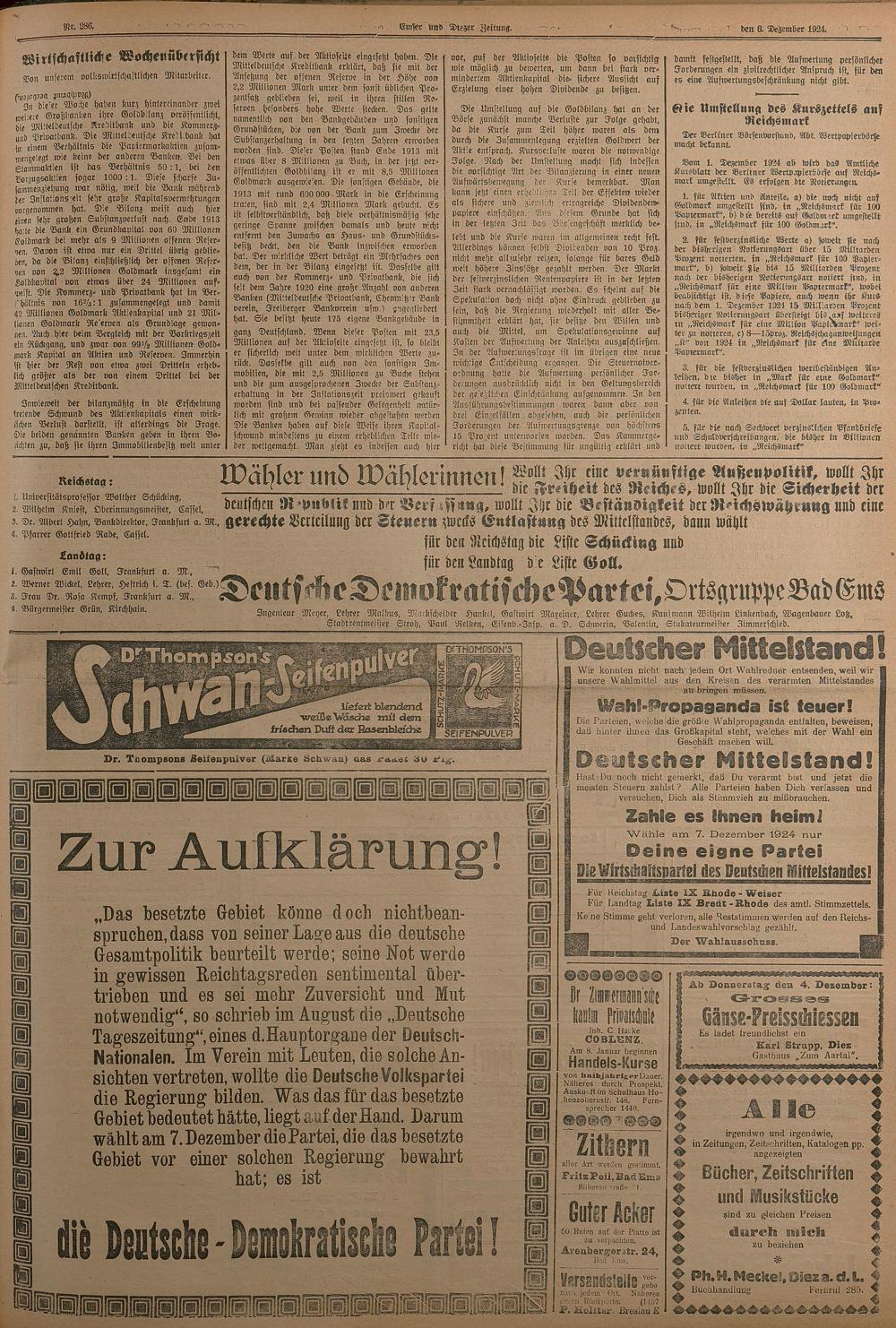 1924: Lahnbote bis 4. Apr. 1924/Emser Zeitung ab 5. Apr. 1924 - Nr. 10, 37 und 71...