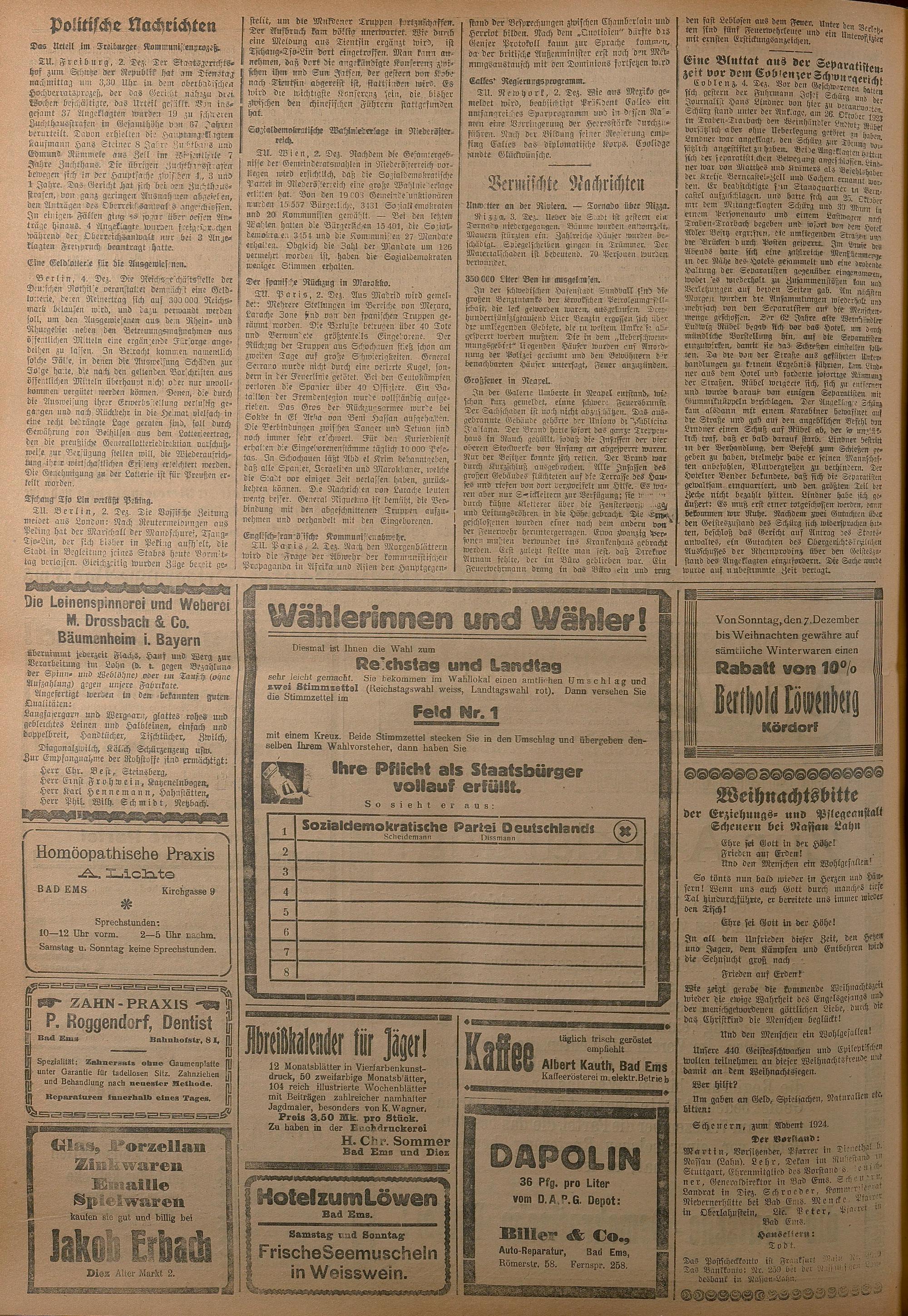 1924: Lahnbote bis 4. Apr. 1924/Emser Zeitung ab 5. Apr. 1924 - Nr. 10, 37 und 71...