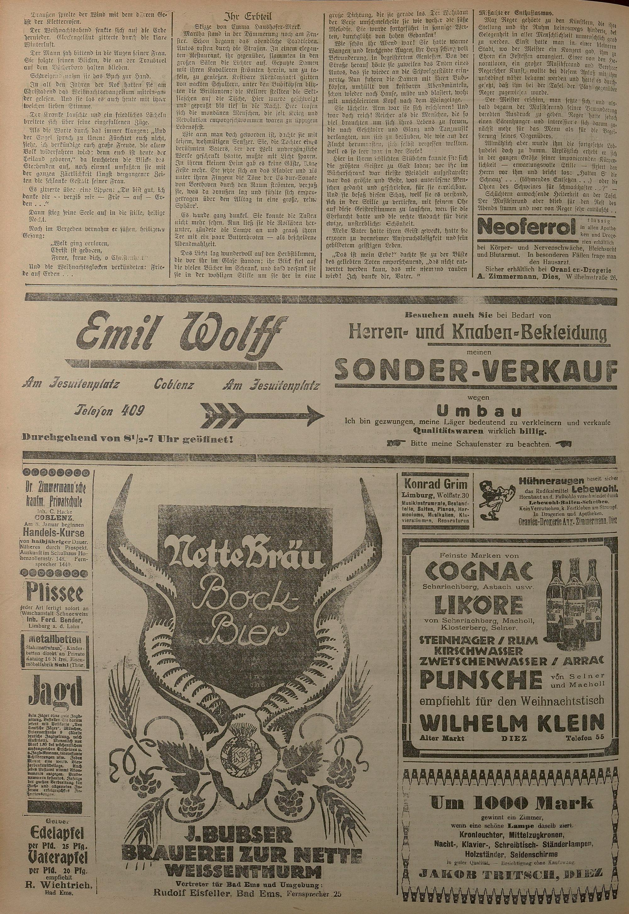 1924: Lahnbote bis 4. Apr. 1924/Emser Zeitung ab 5. Apr. 1924 - Nr. 10, 37 und 71...
