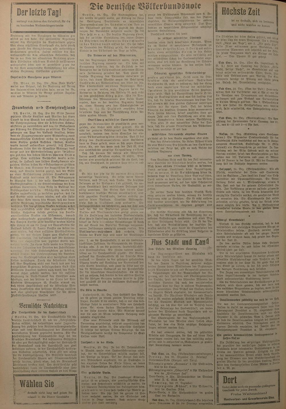 1924: Lahnbote bis 4. Apr. 1924/Emser Zeitung ab 5. Apr. 1924 - Nr. 10, 37 und 71...