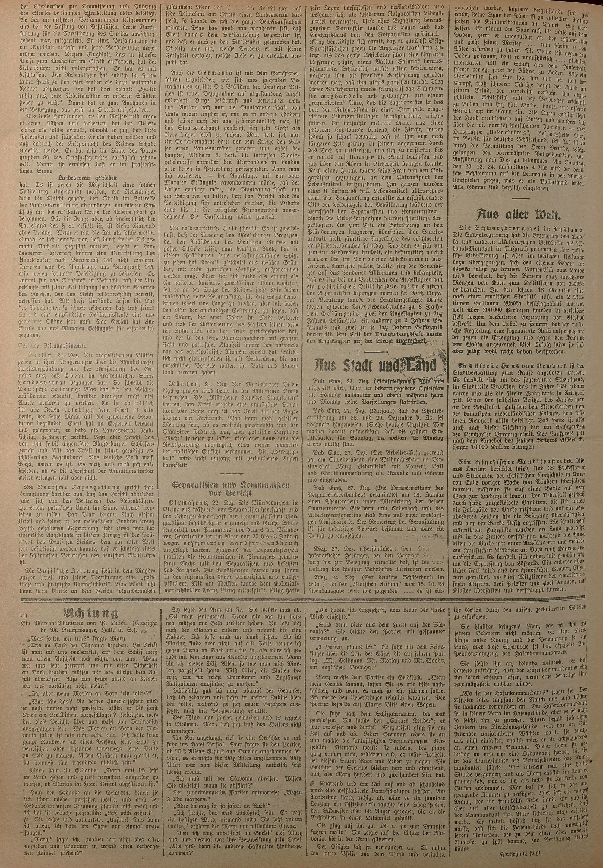 1924: Lahnbote bis 4. Apr. 1924/Emser Zeitung ab 5. Apr. 1924 - Nr. 10, 37 und 71...