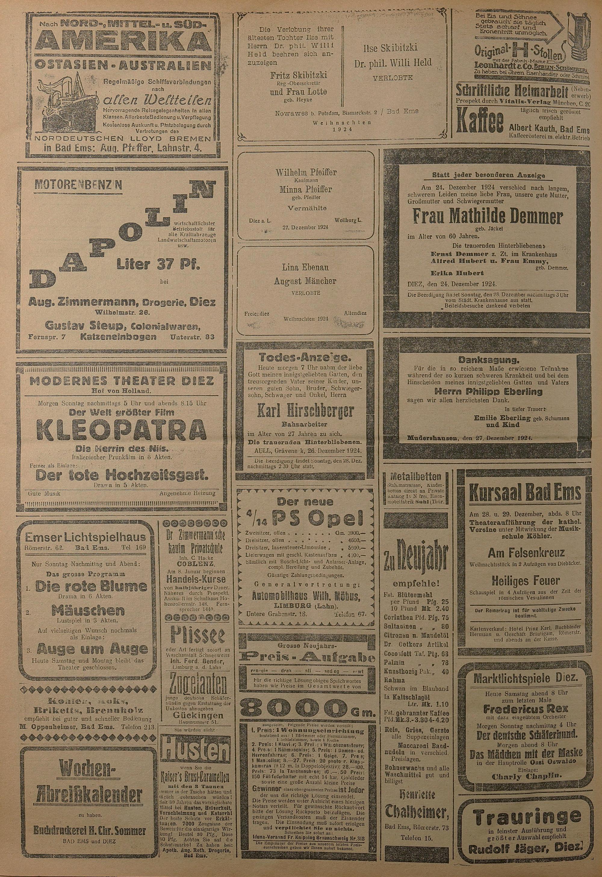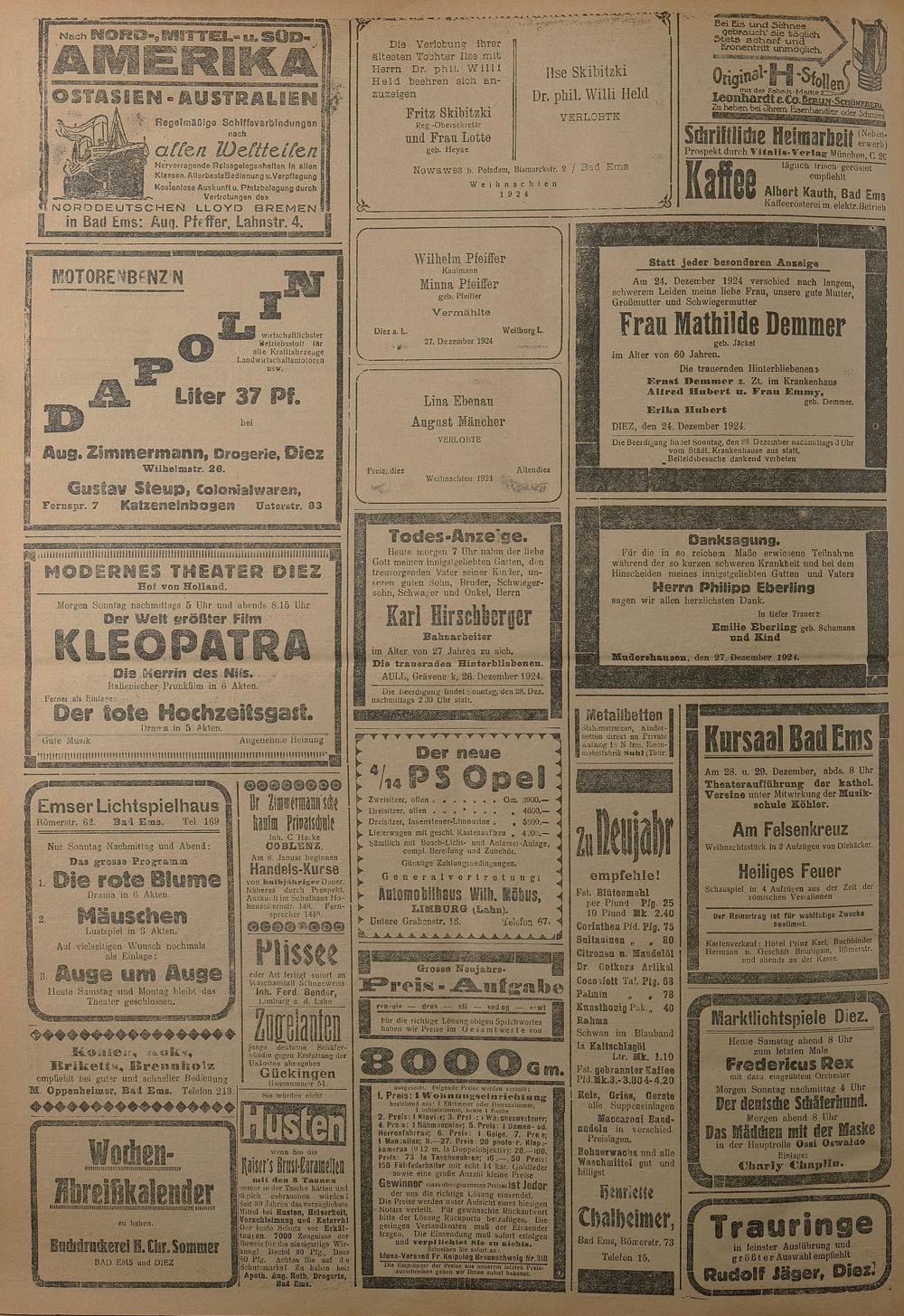 1924: Lahnbote bis 4. Apr. 1924/Emser Zeitung ab 5. Apr. 1924 - Nr. 10, 37 und 71...