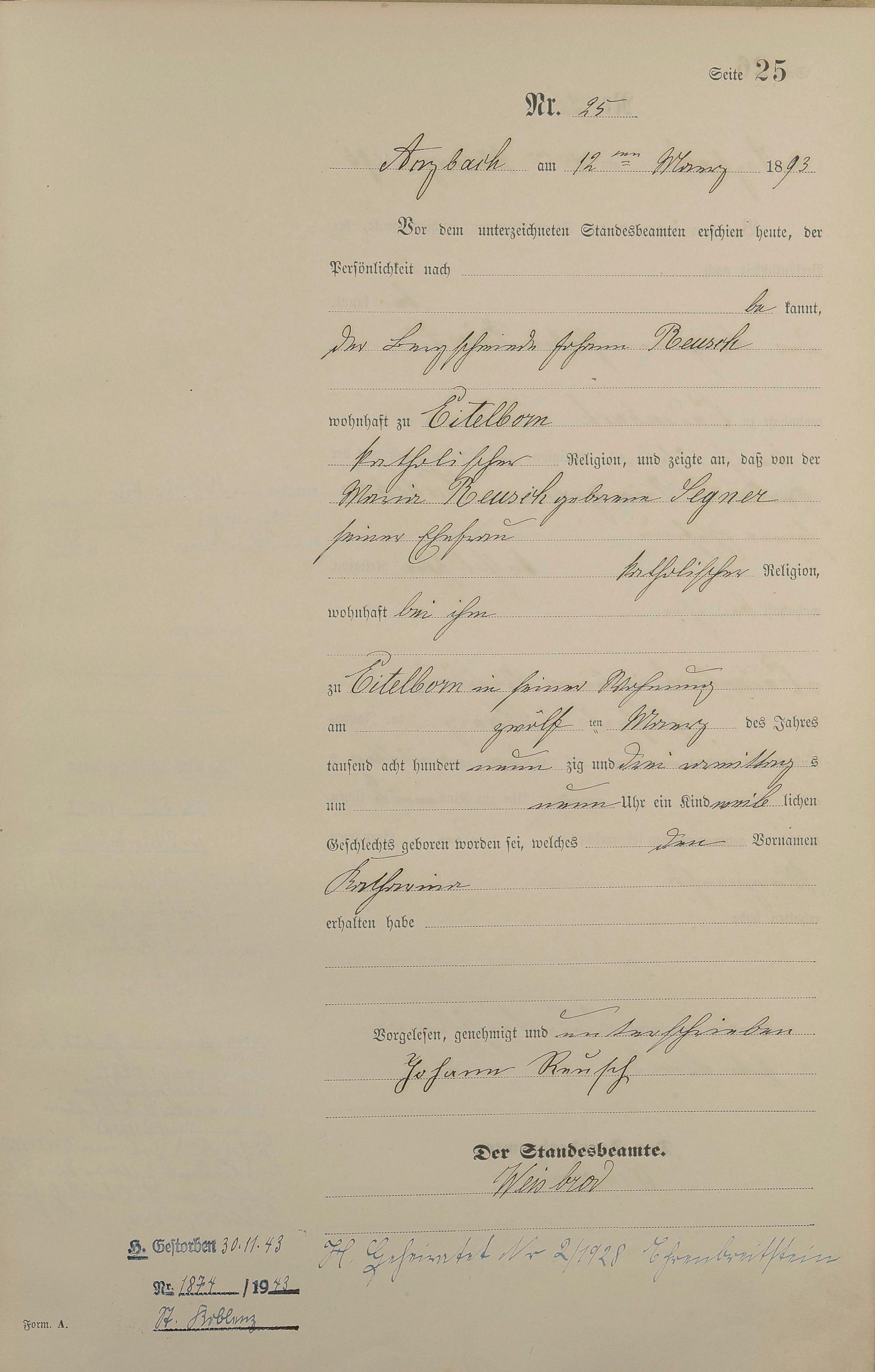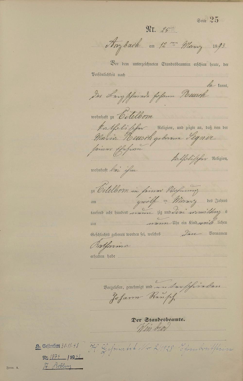 Geburtsregister 1893