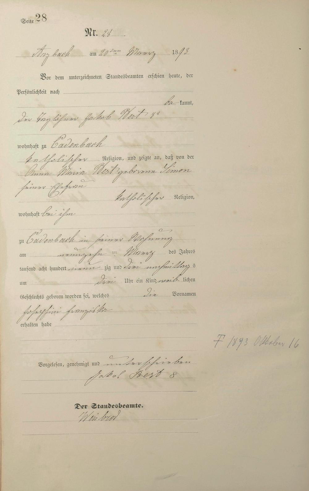 Geburtsregister 1893