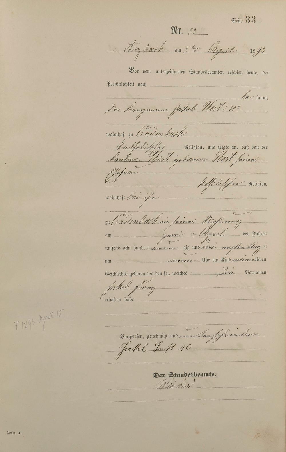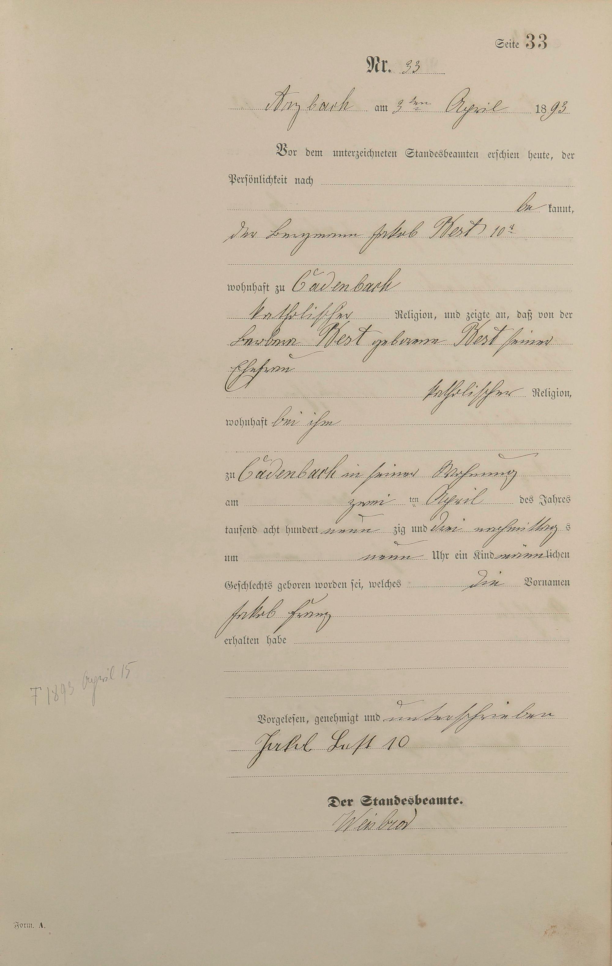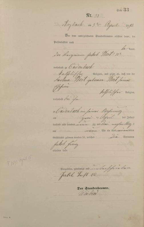 Geburtsregister 1893