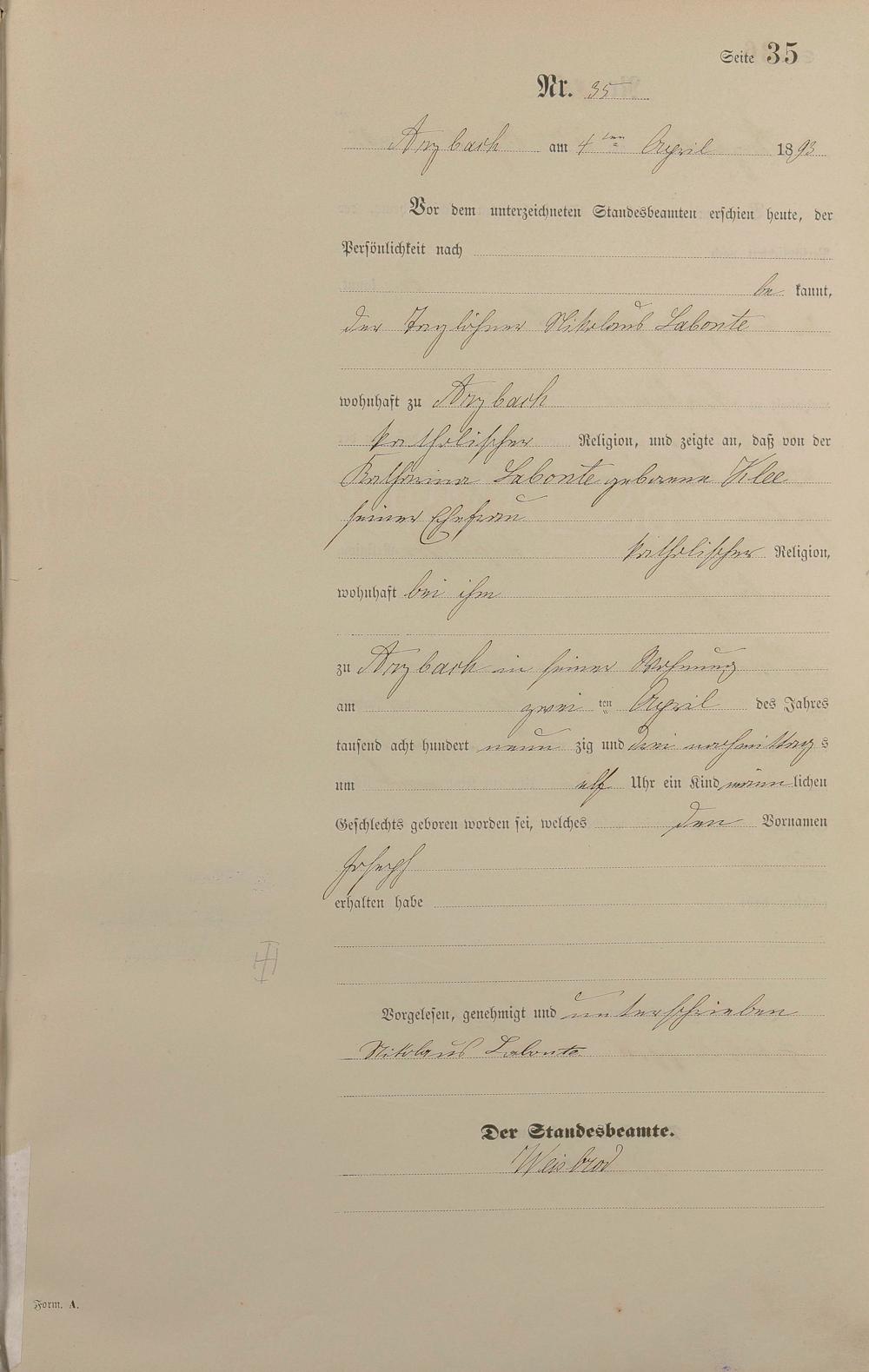 Geburtsregister 1893