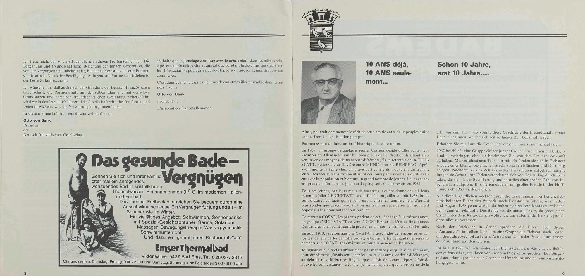 Bs 4.35: Festschrift zum 10jährigen Partnerschafts-Jubiläum Bad Ems - Cosne-sur-Loire....