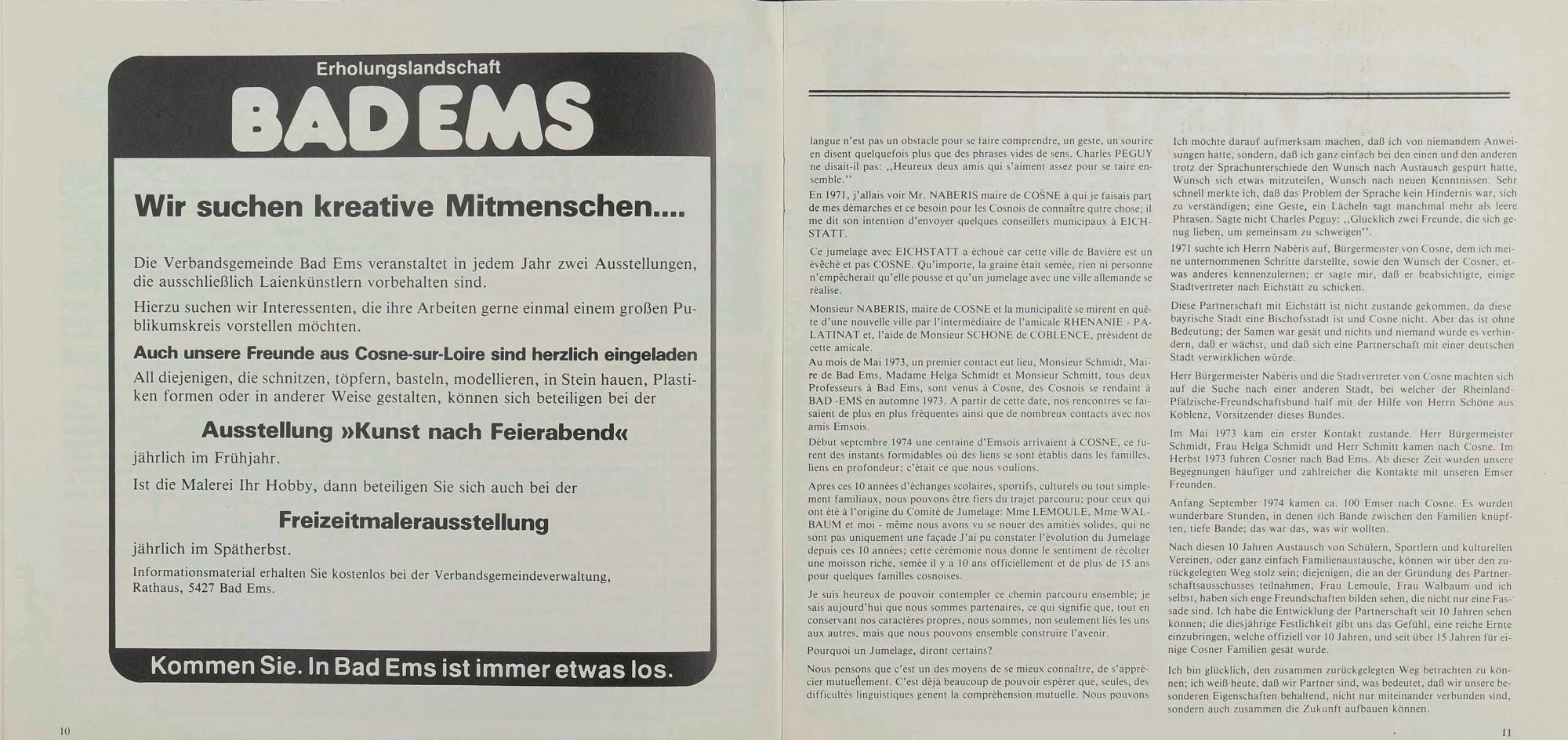 Bs 4.35: Festschrift zum 10jährigen Partnerschafts-Jubiläum Bad Ems - Cosne-sur-Loire....
