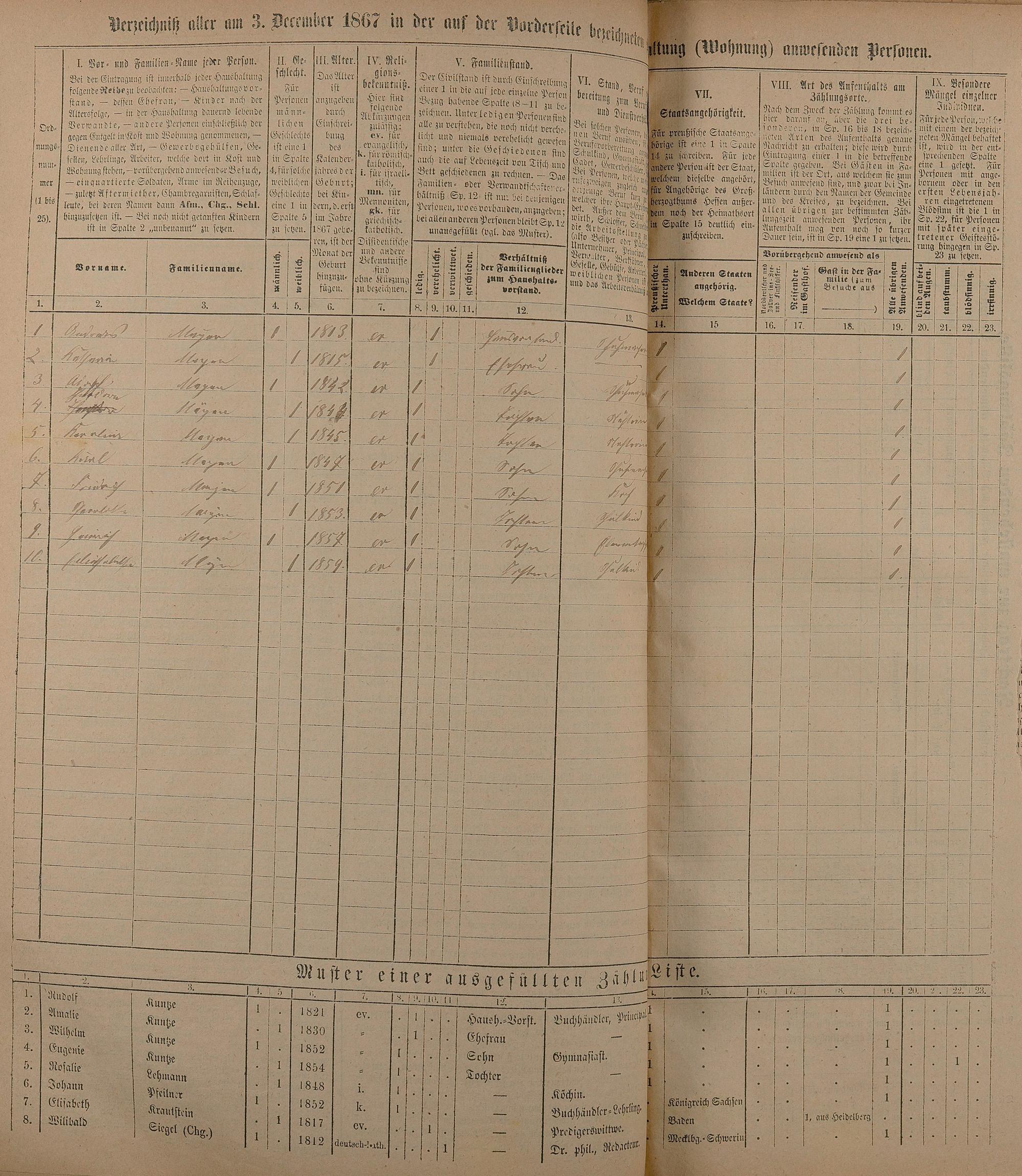 Volkszählung 1867