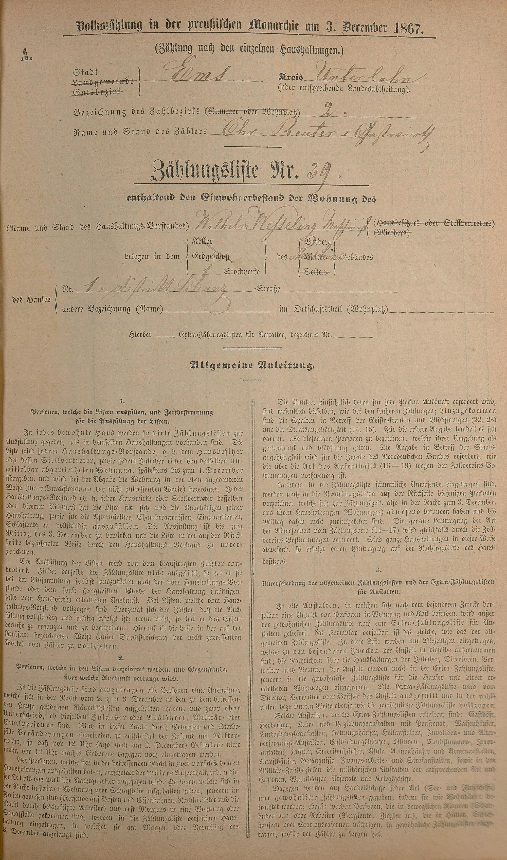 Volkszählung 1867