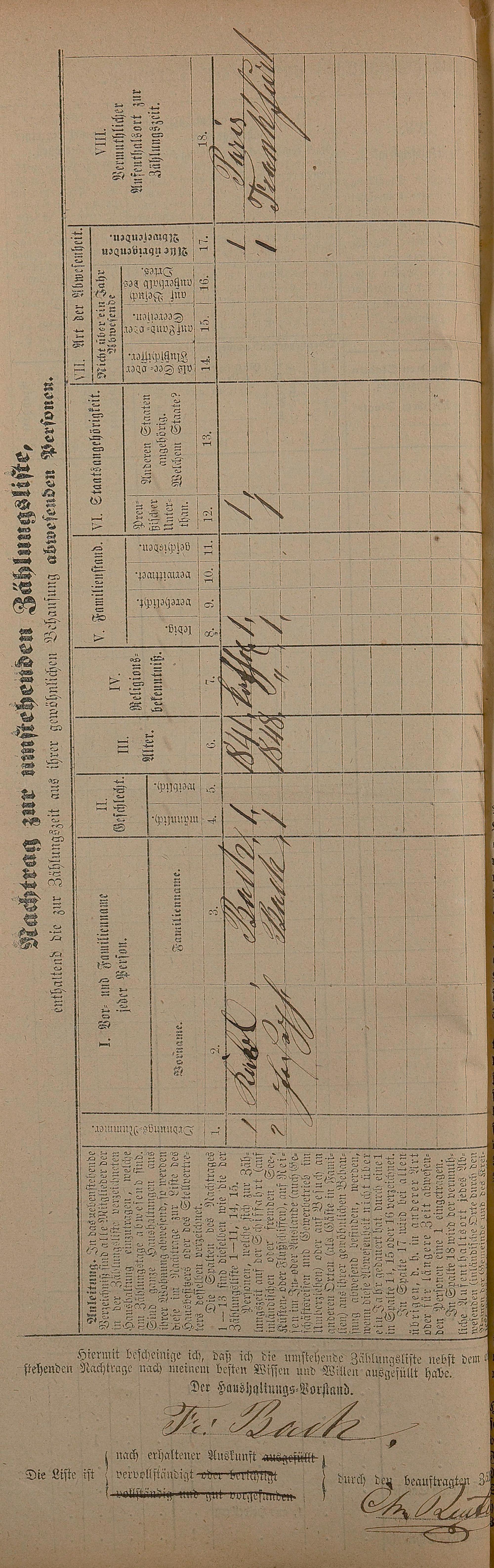 Volkszählung 1867
