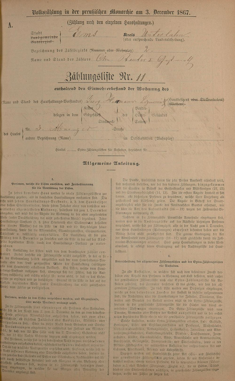 Volkszählung 1867