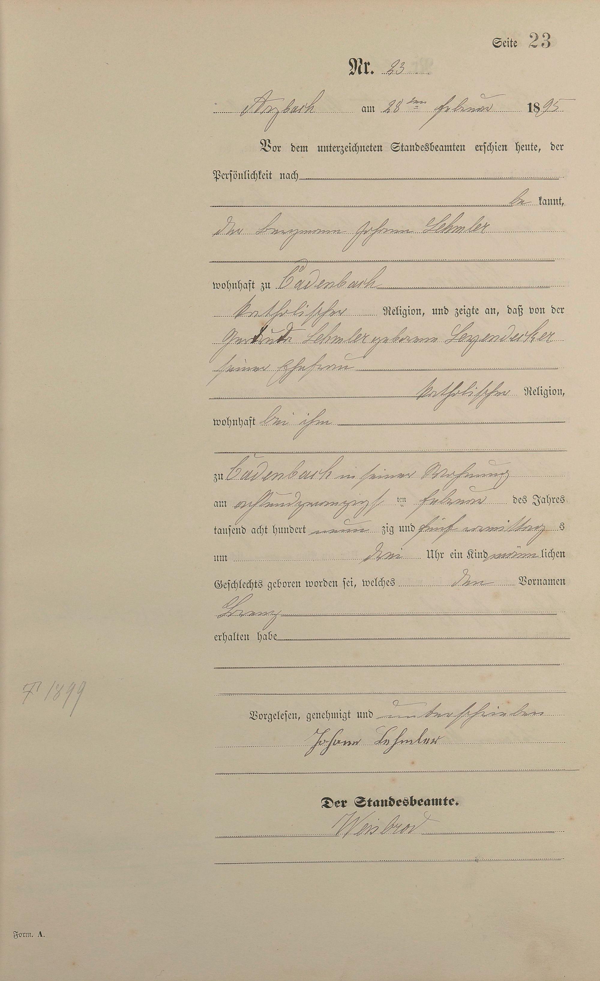 Geburtsregister 1895