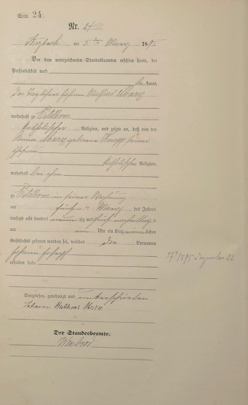 Geburtsregister 1895