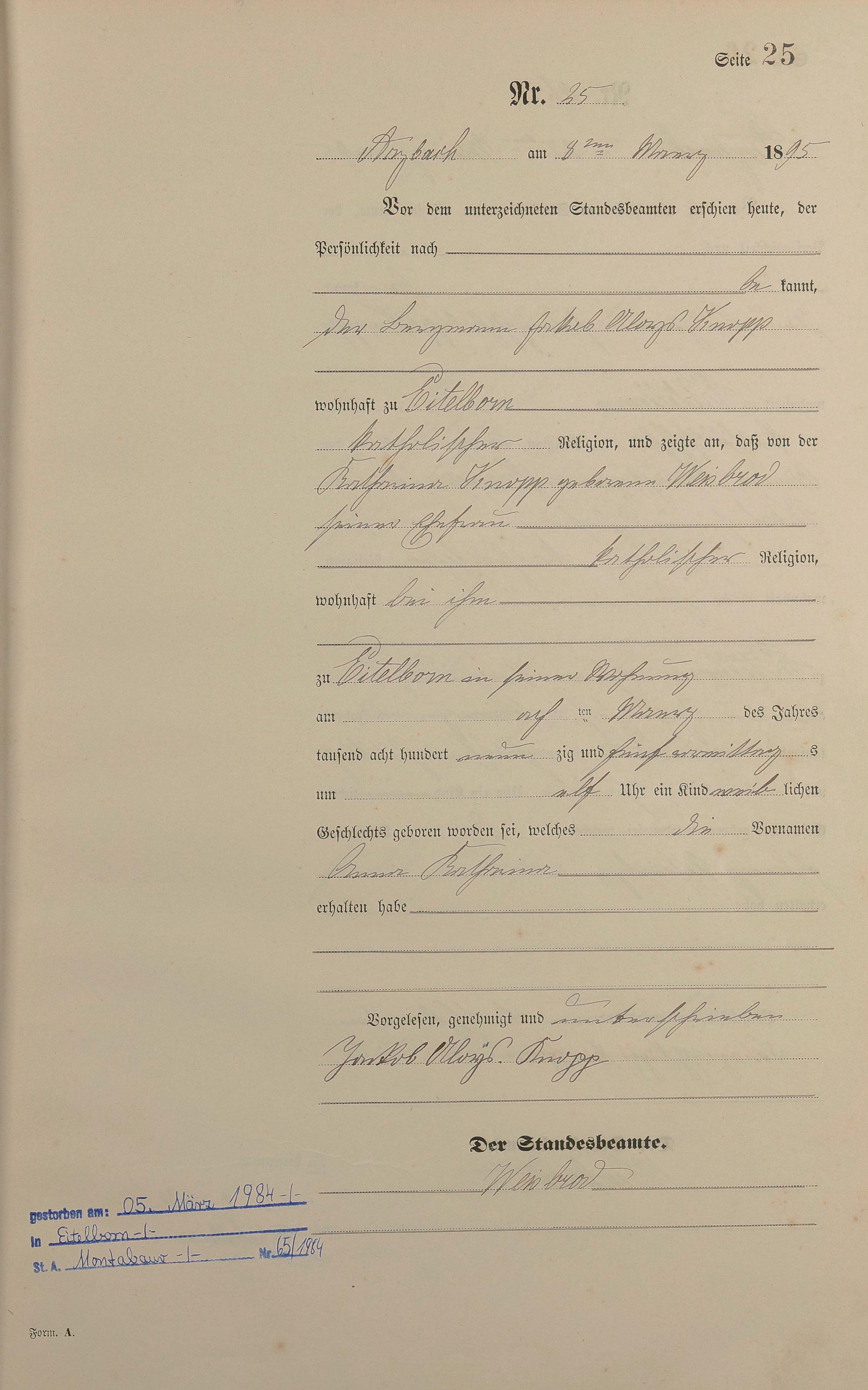 Geburtsregister 1895