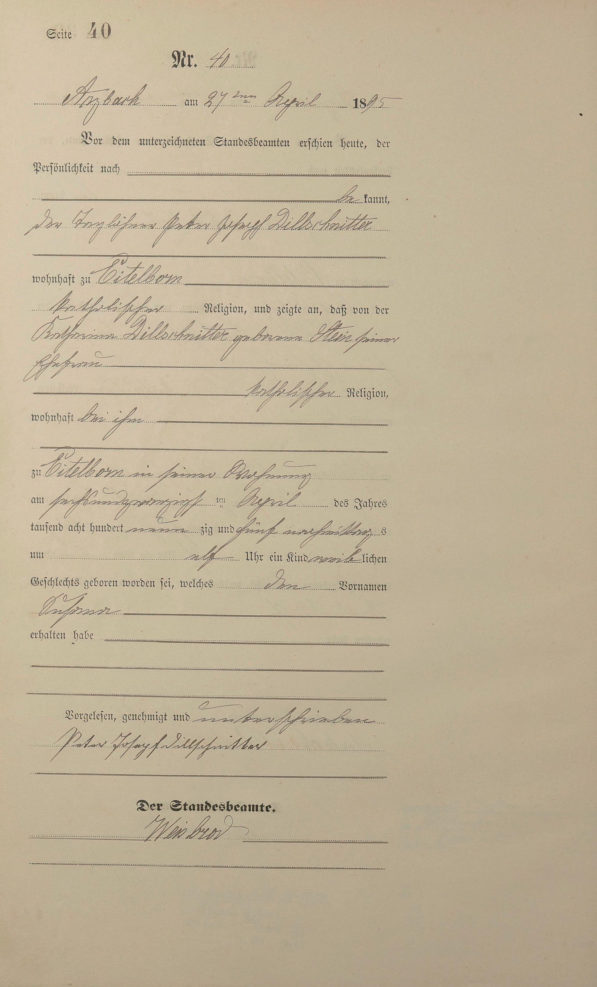 Geburtsregister 1895