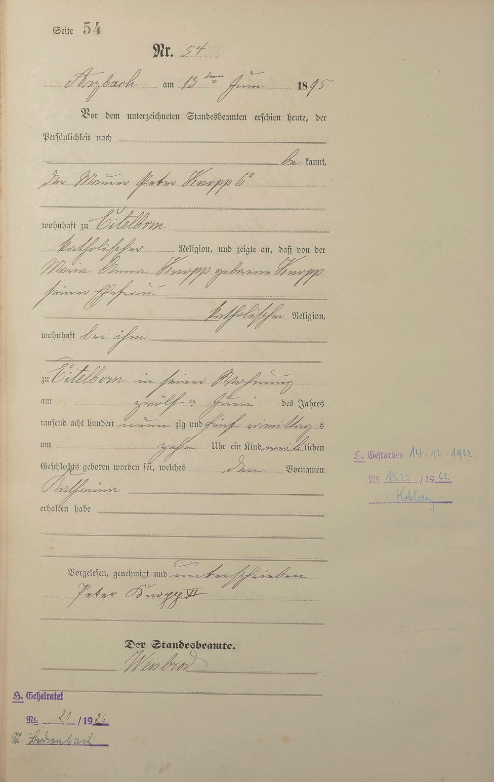 Geburtsregister 1895