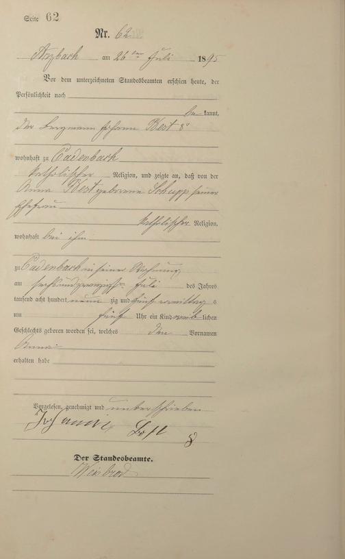 Geburtsregister 1895