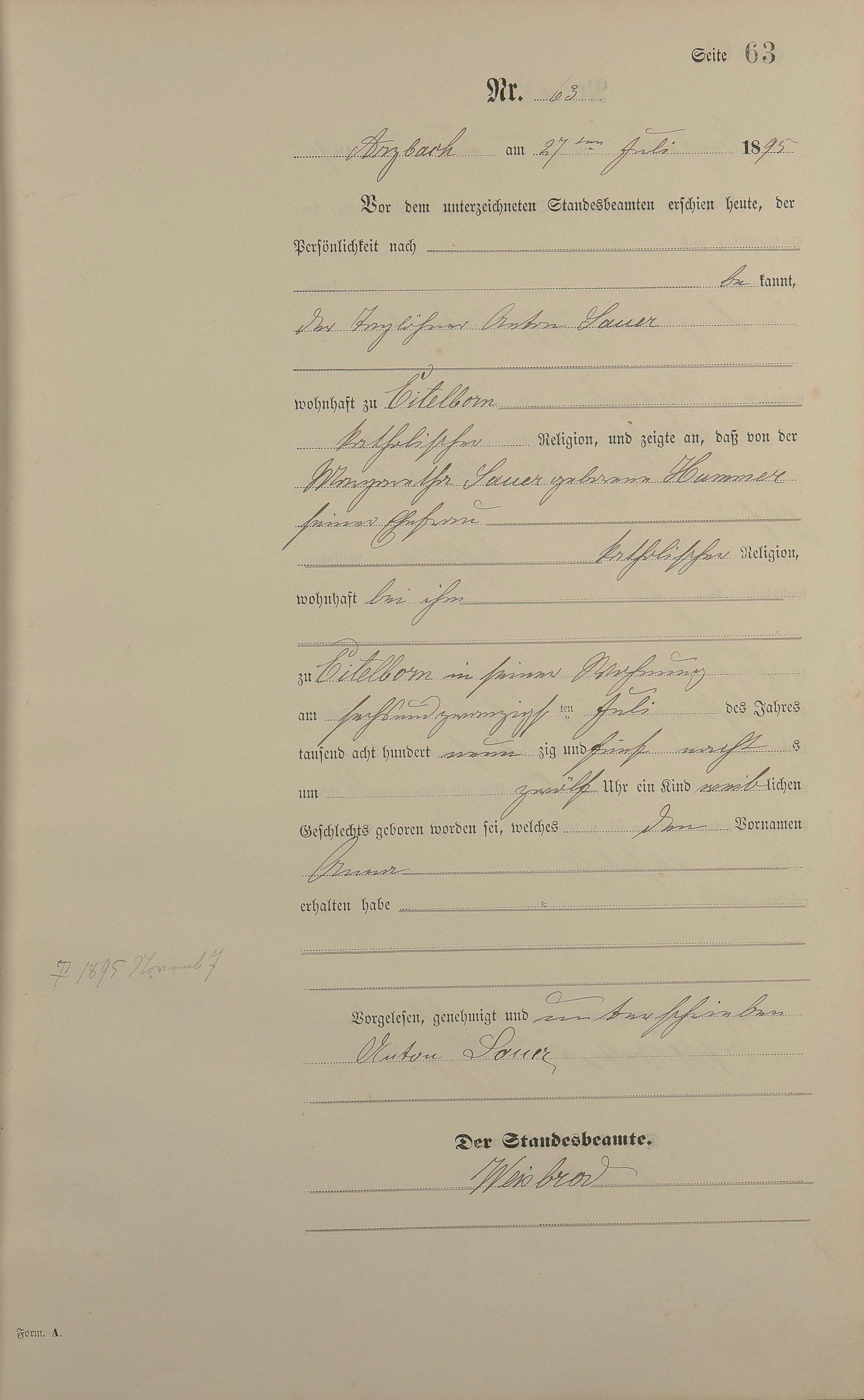 Geburtsregister 1895