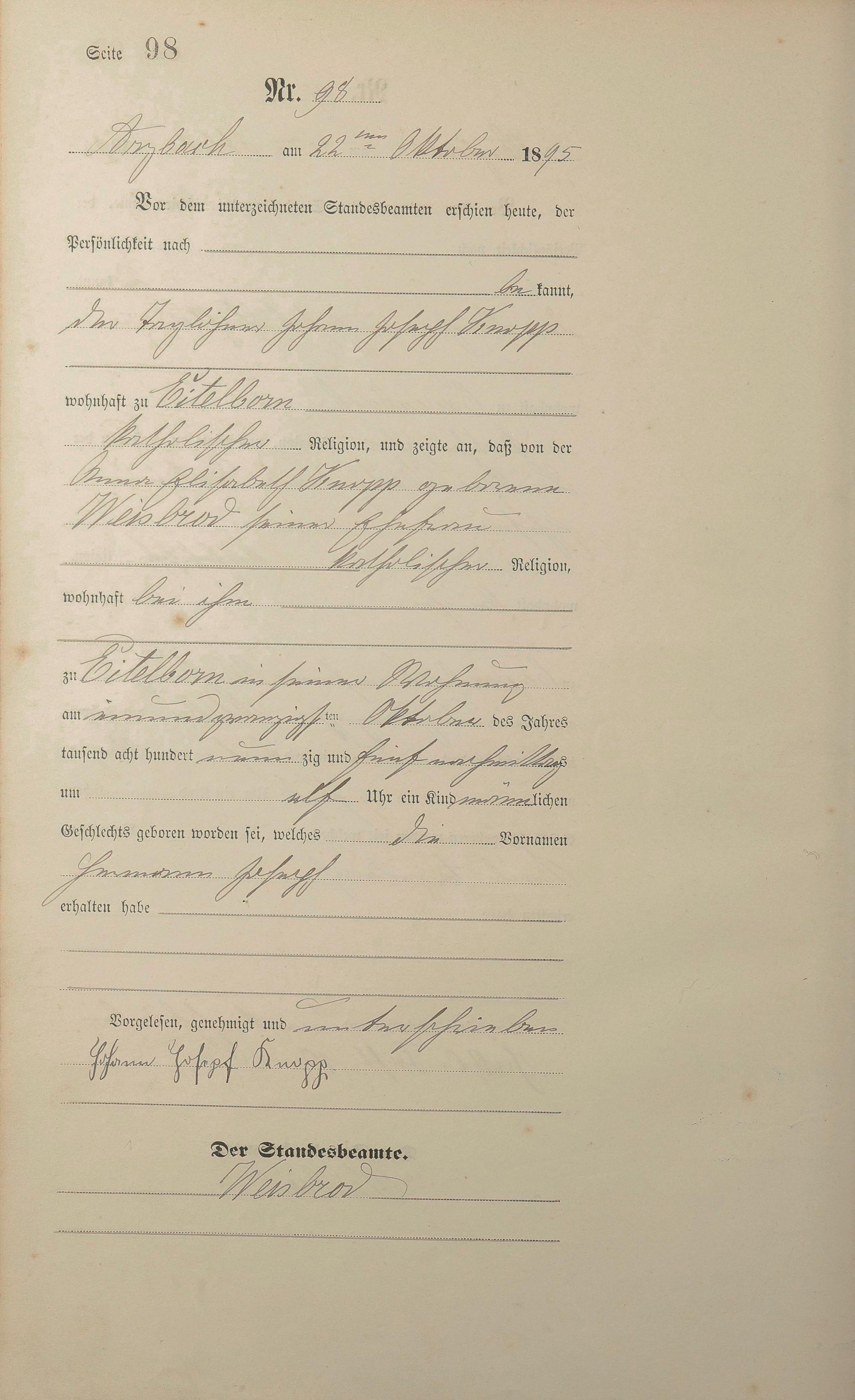 Geburtsregister 1895