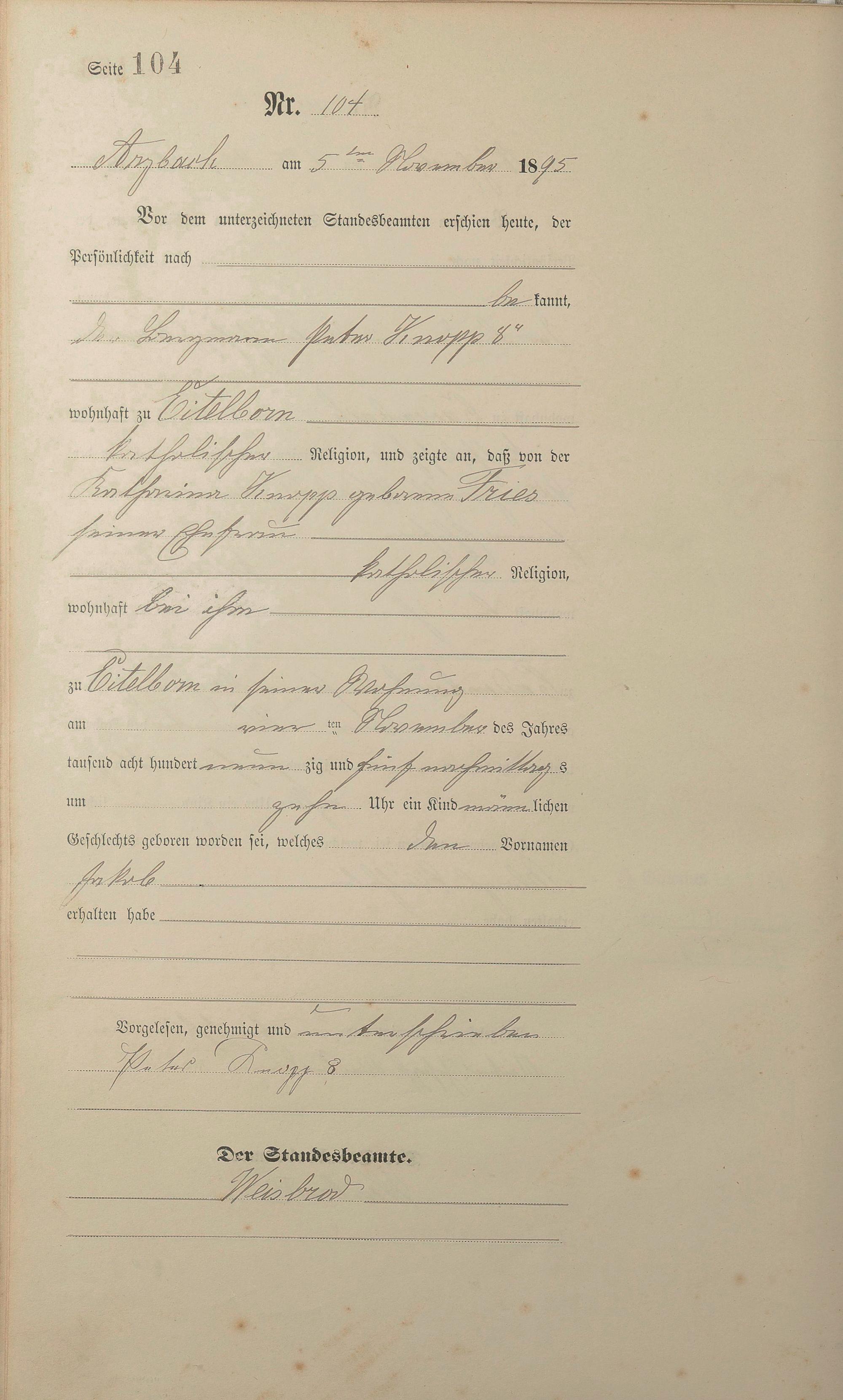 Geburtsregister 1895