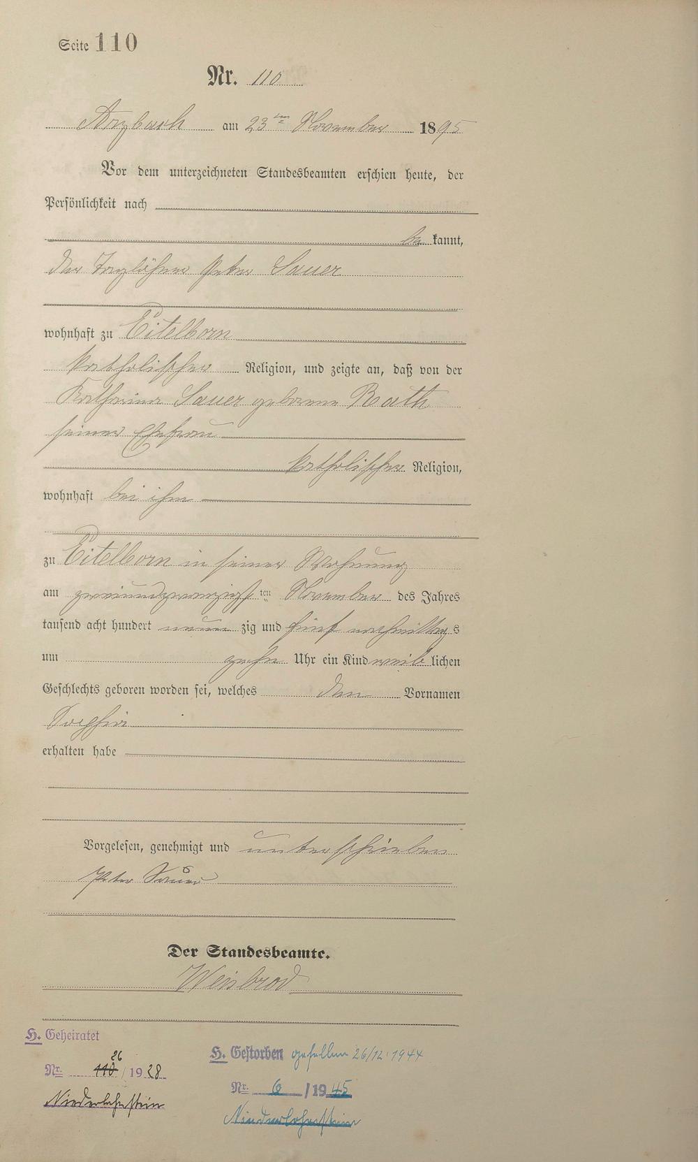 Geburtsregister 1895
