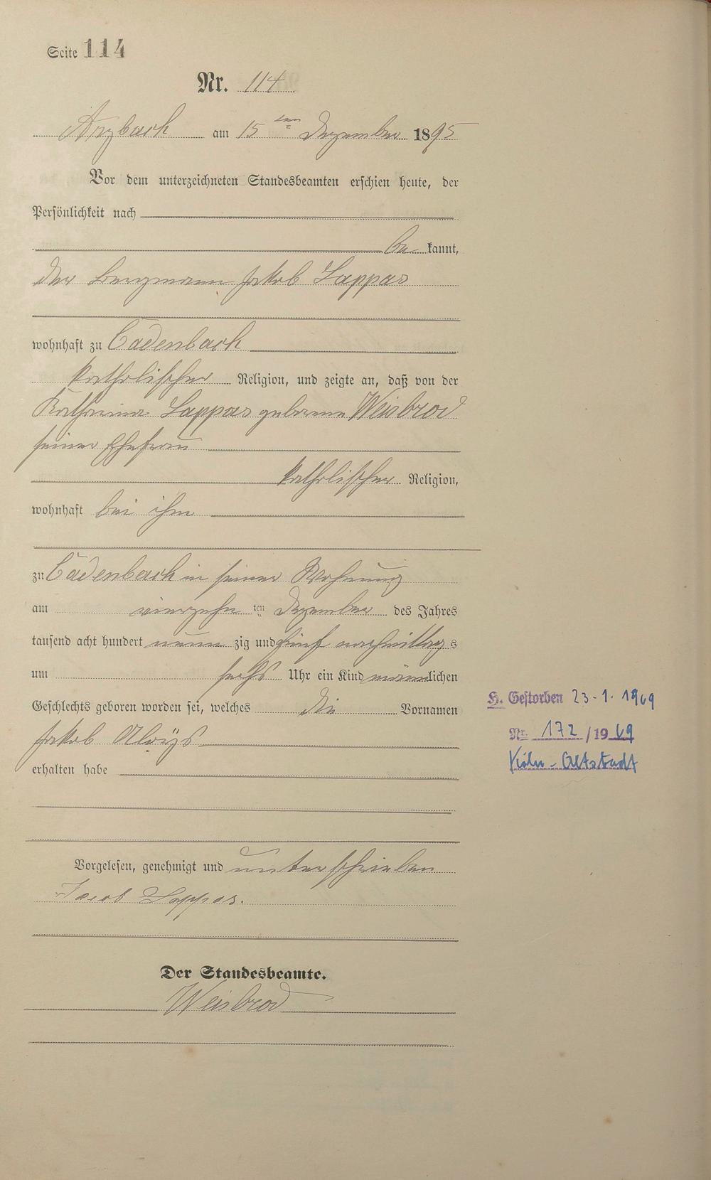 Geburtsregister 1895