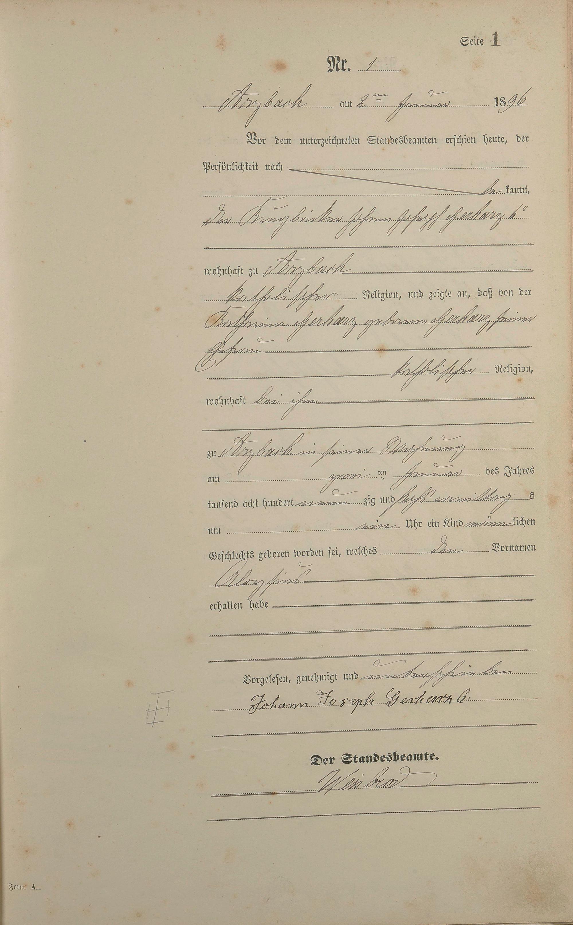 Geburtsregister 1896