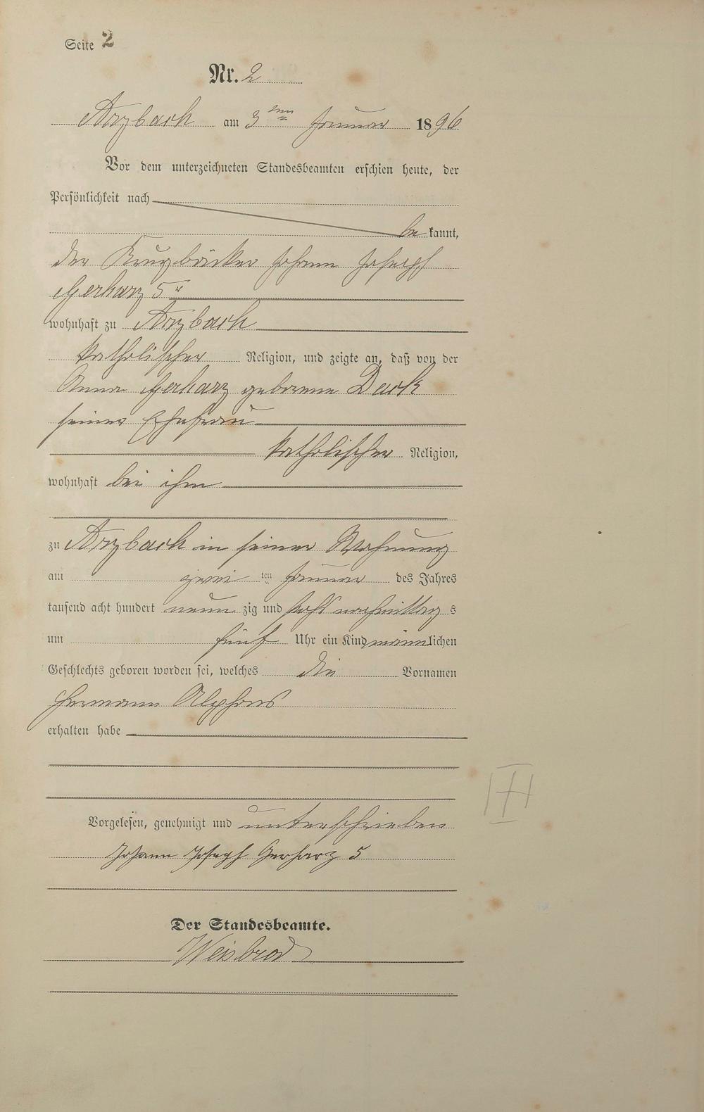 Geburtsregister 1896