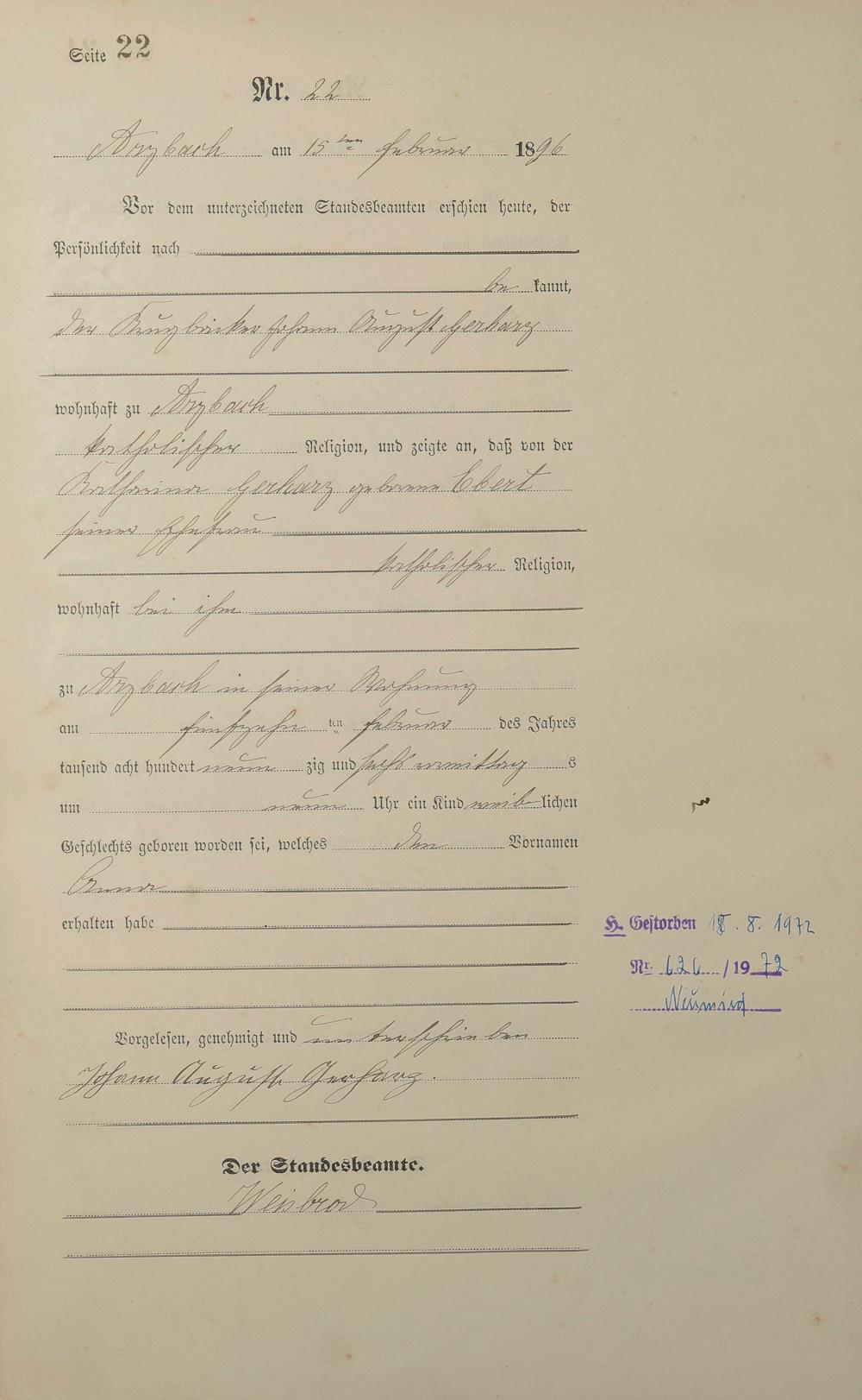 Geburtsregister 1896