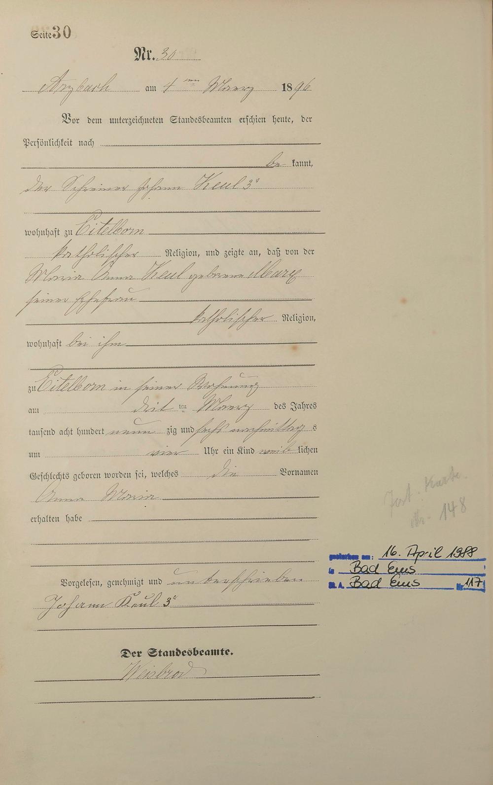 Geburtsregister 1896