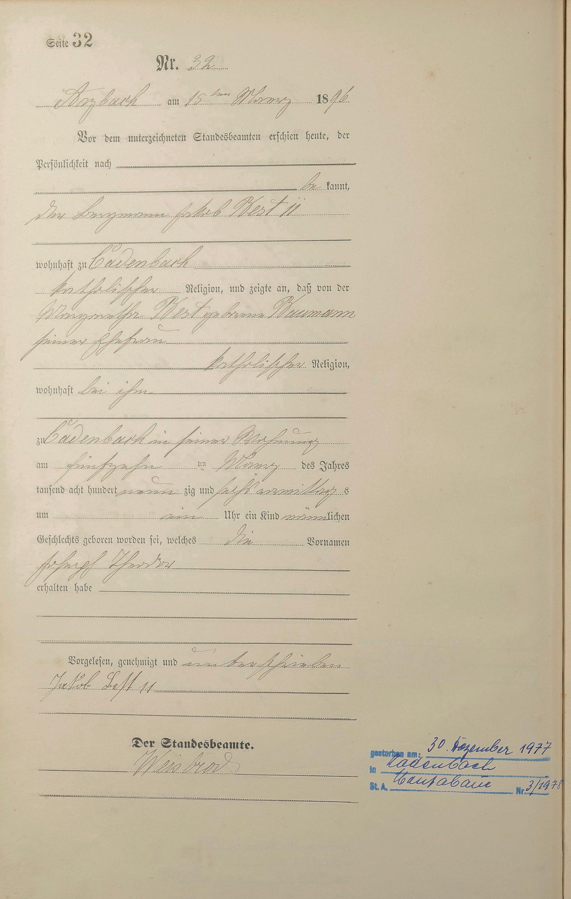 Geburtsregister 1896