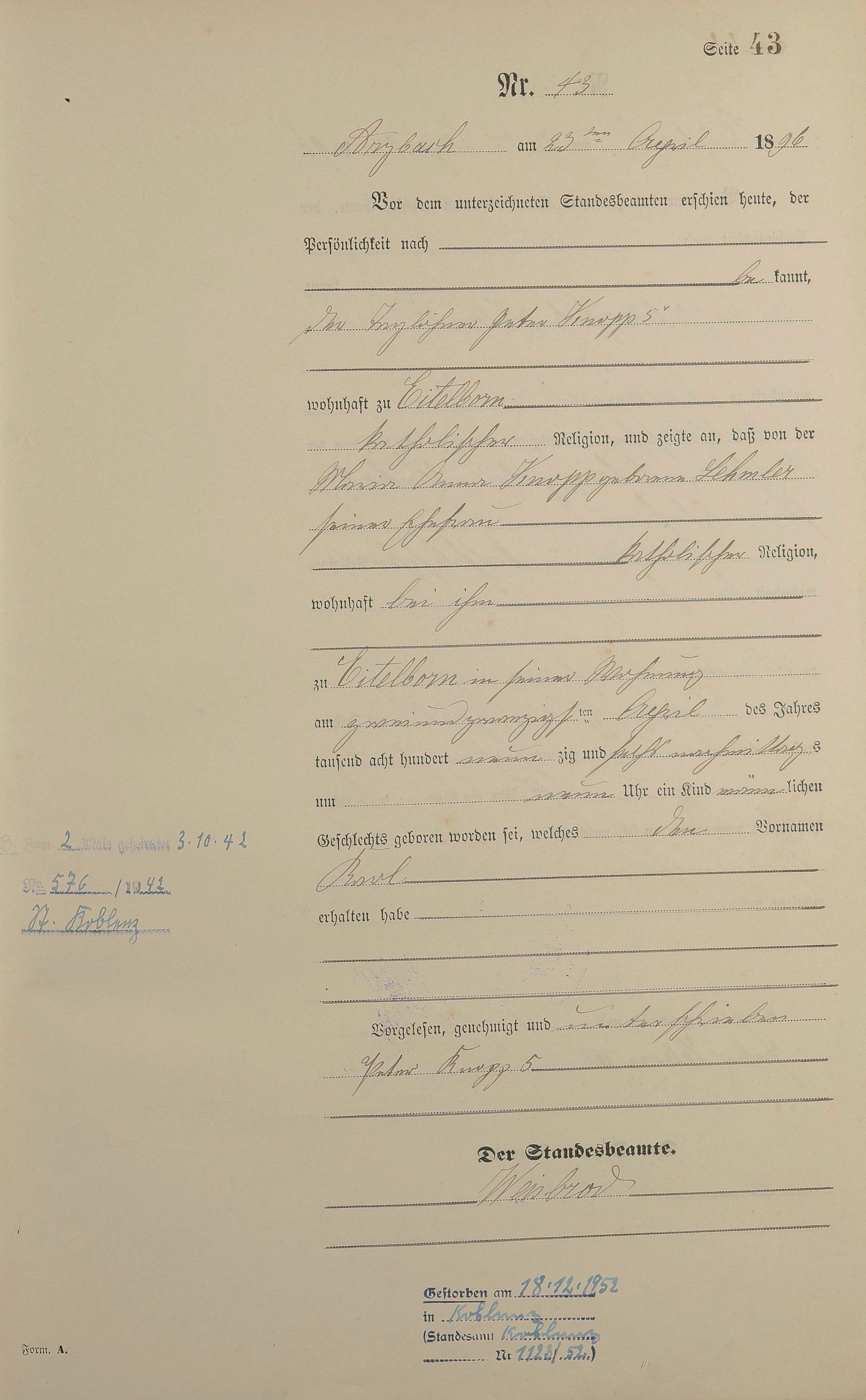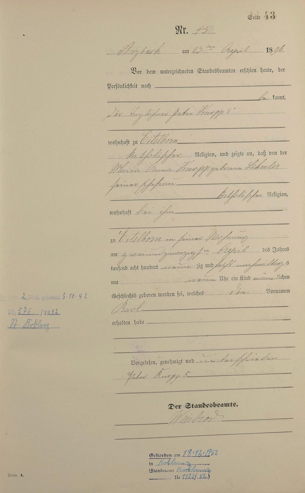 Geburtsregister 1896