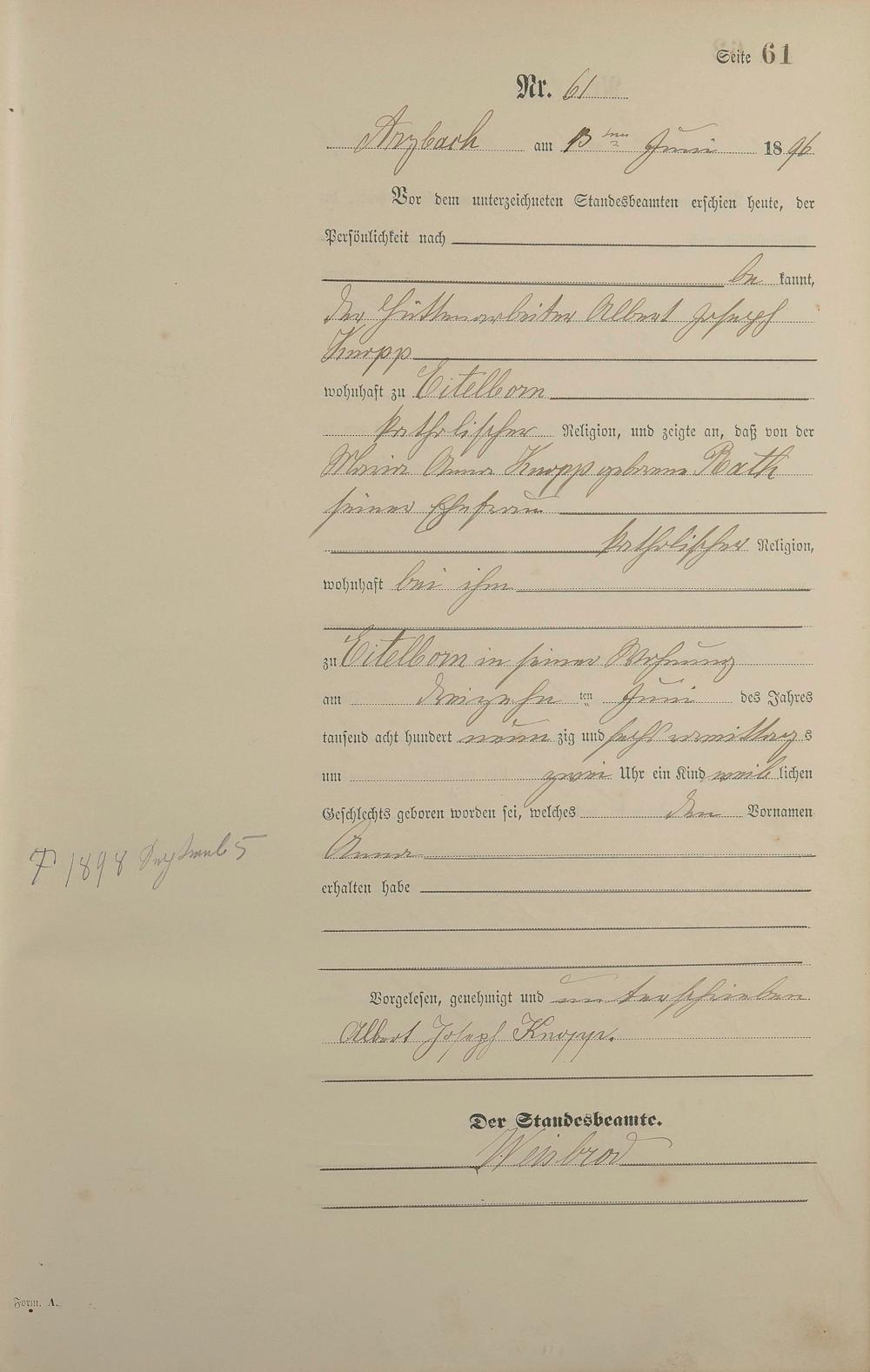 Geburtsregister 1896